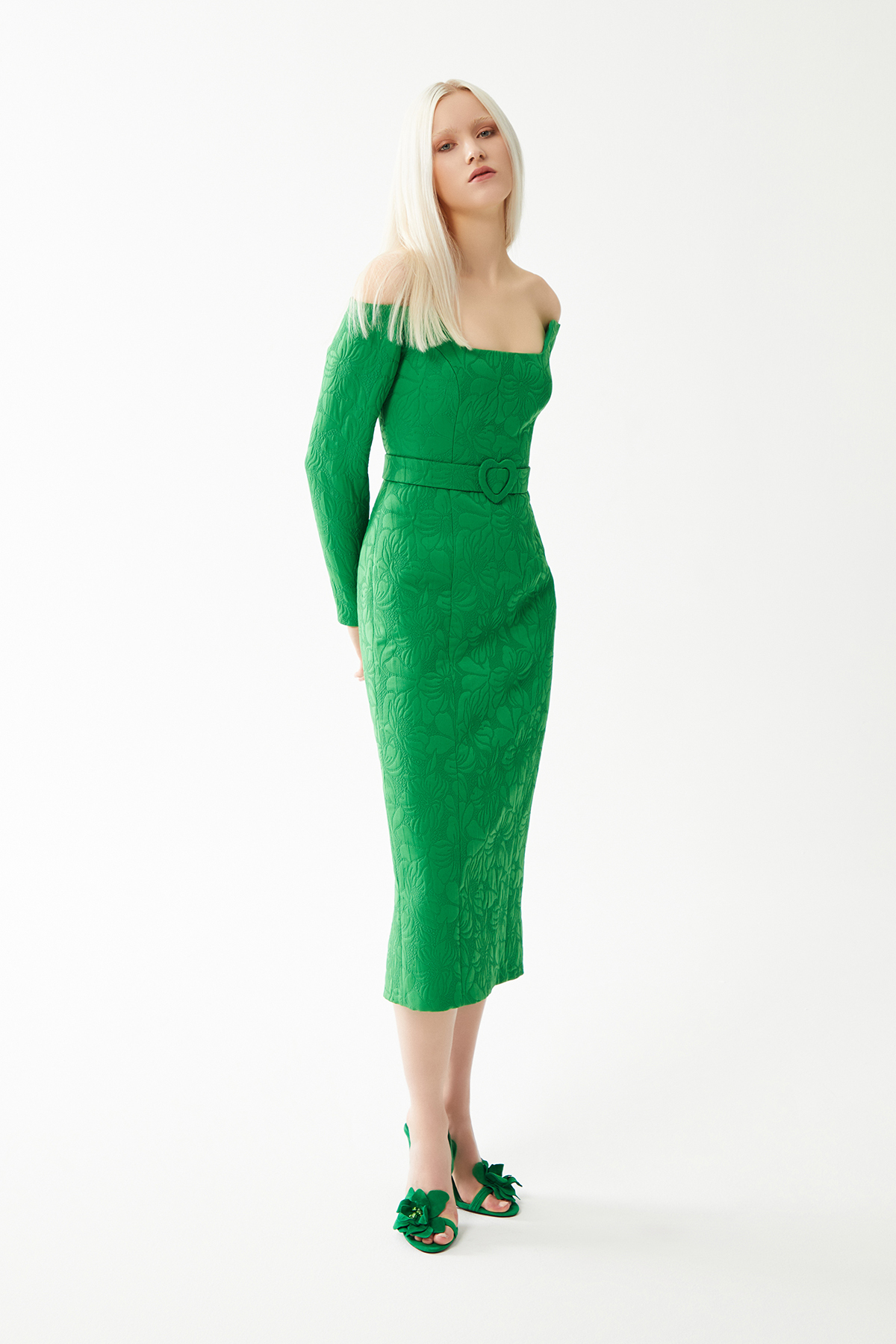 PETROL YEŞİLİ TAŞ İŞLEMELİ YIRTMAÇLI MİDİ ELBİSE PETROL YEŞİLİ TAŞ İŞLEMELİ YIRTMAÇLI MİDİ ELBİSE M24KJP054176_487 40