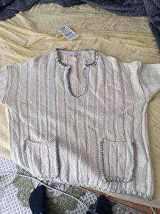 Kadın V Yaka Çoban Dikişli İşleme Detaylı Cepli Triko Kazak 20247523 Kadın V Yaka Çoban Dikişli İşleme Detaylı Cepli Triko Kazak 20247523 تک سایز