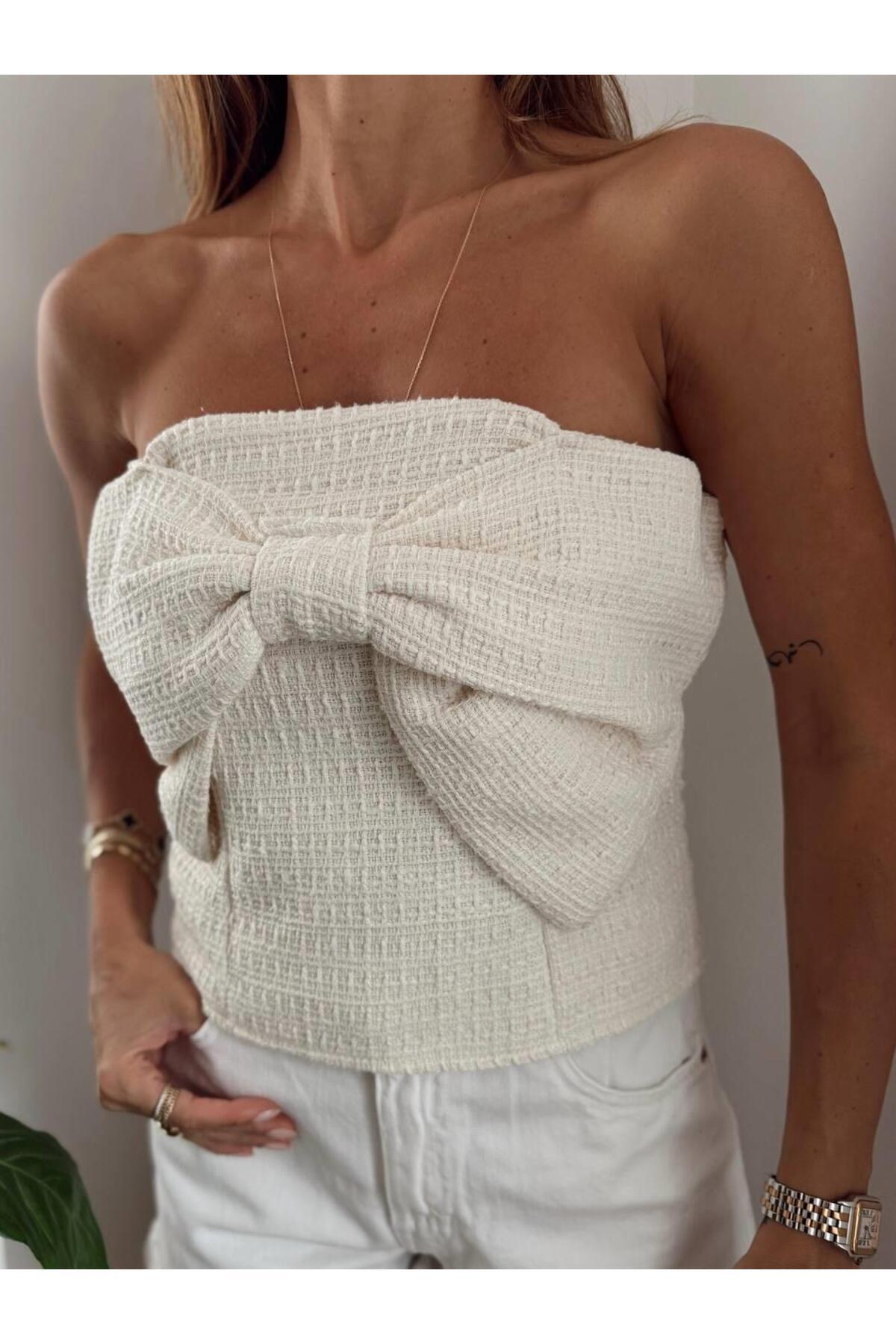 Kadın Tüvit Kumaş Fermuarlı Straplez Fiyonk Detaylı Ekru Büstiyer Kadın Tüvit Kumaş Fermuarlı Straplez Fiyonk Detaylı Ekru Büstiyer 25BT2812 L