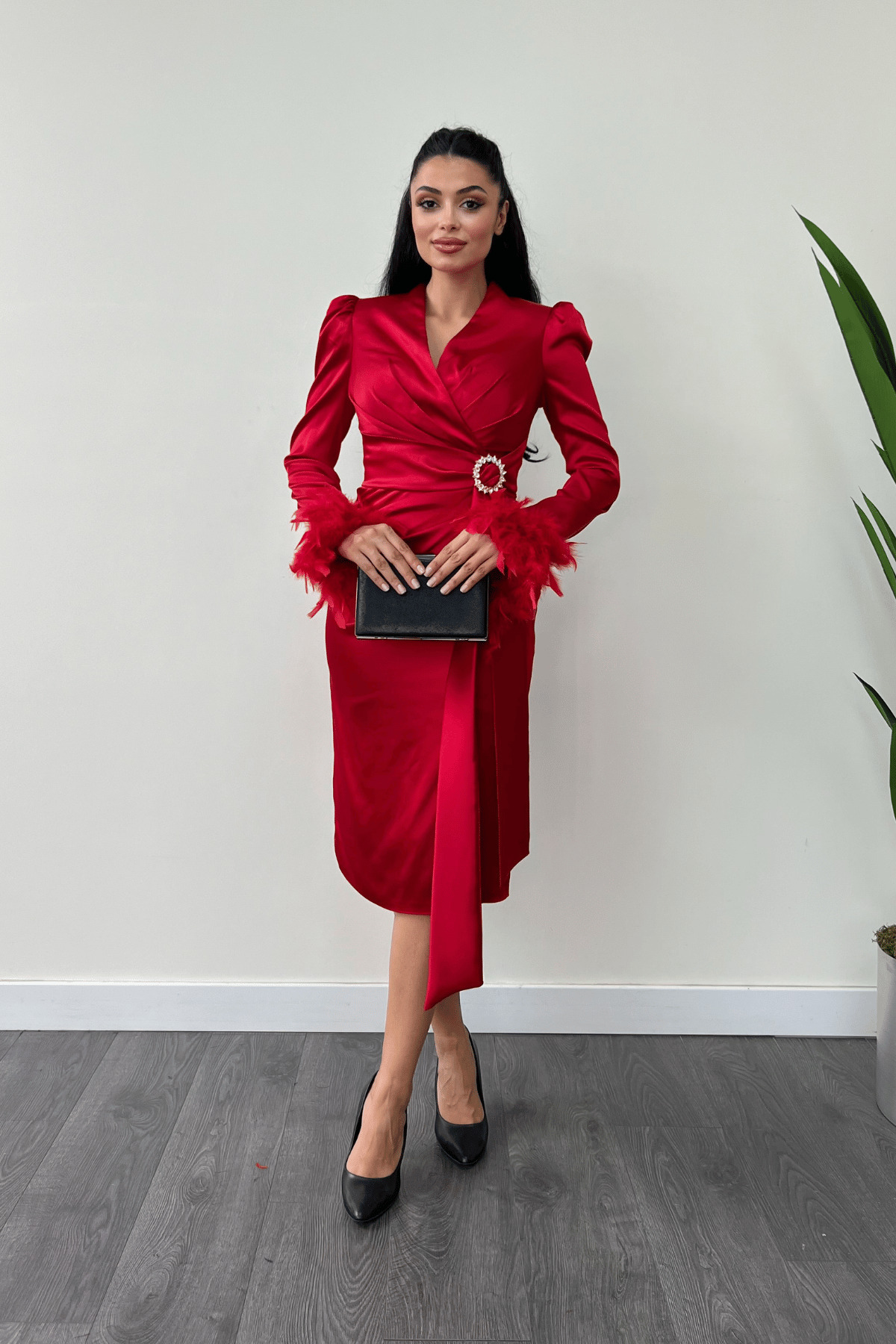 Saten Kumaş Otriş Detaylı Kalem Elbise - FUŞYA Saten Kumaş Otriş Detaylı Kalem Elbise - FUŞYA GYM-1334 42