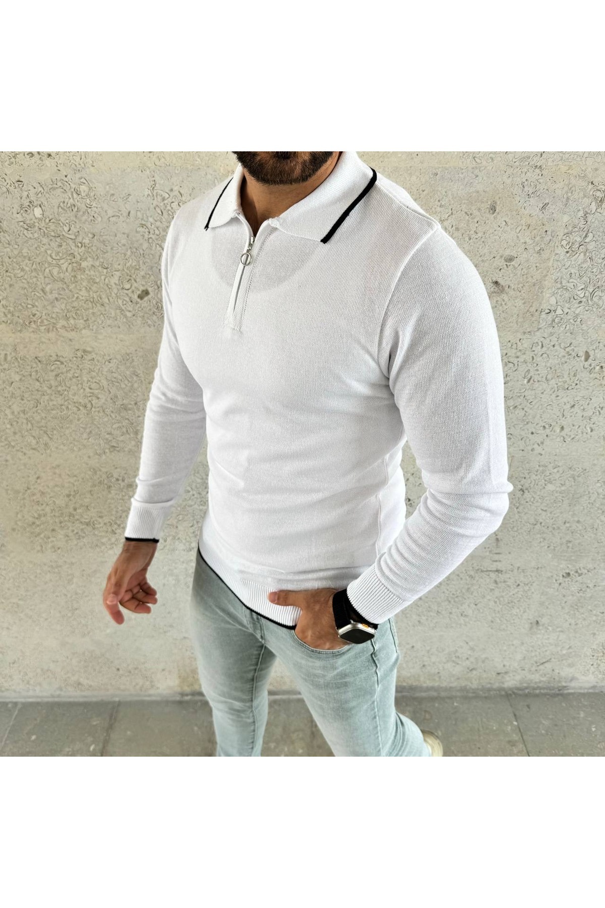 Şeritli Yarım Fermuarlı Triko Kazak Şeritli Yarım Fermuarlı Triko Kazak seritlikazak 2XL