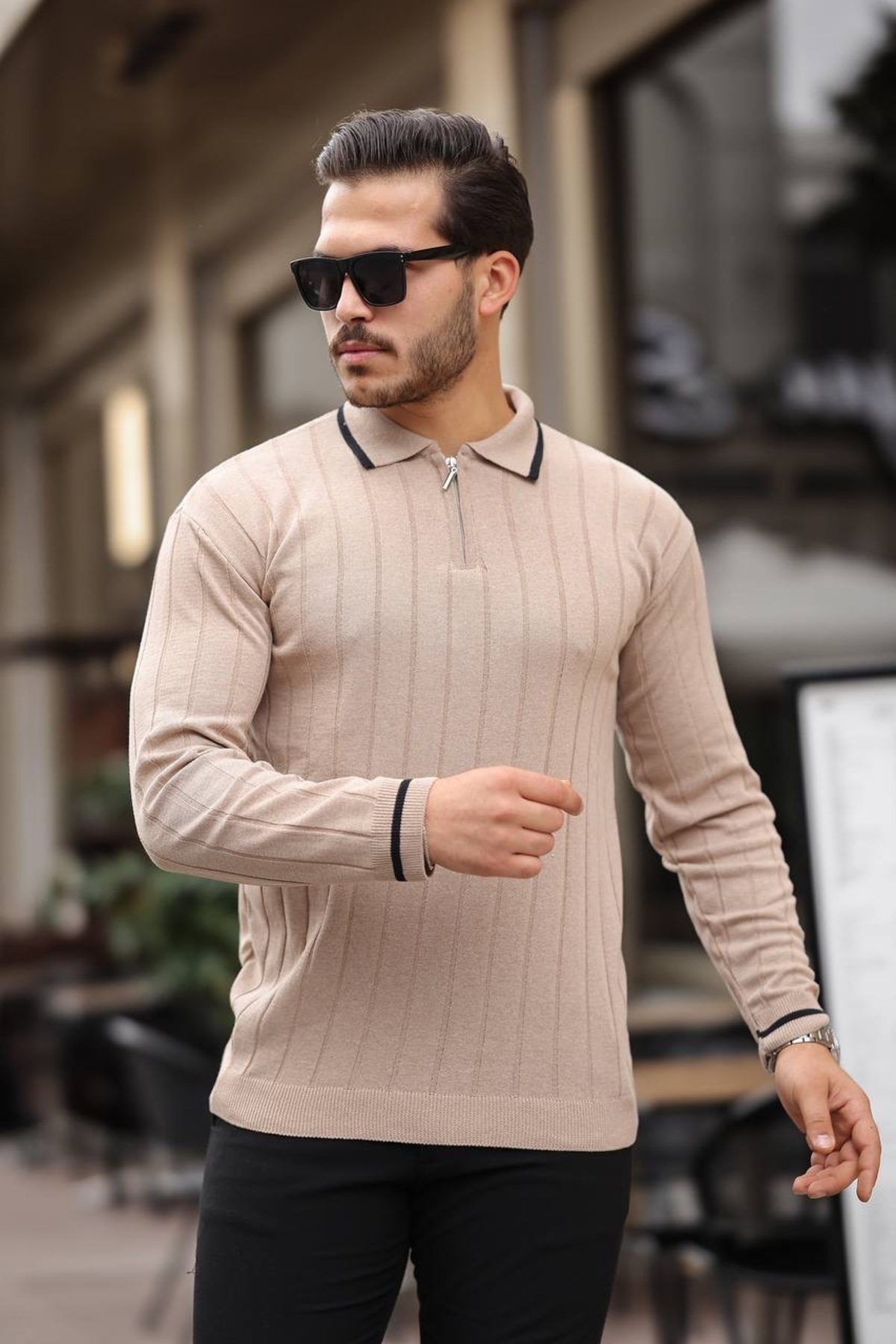 Şeritli Yarım Fermuarlı Triko Kazak Şeritli Yarım Fermuarlı Triko Kazak seritlikazak 2XL