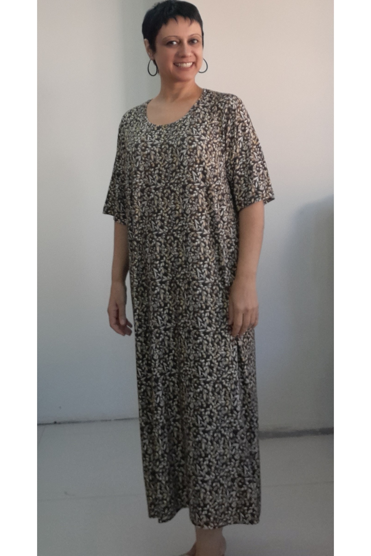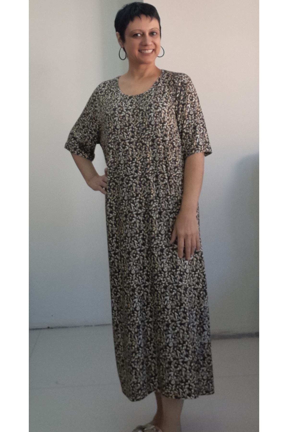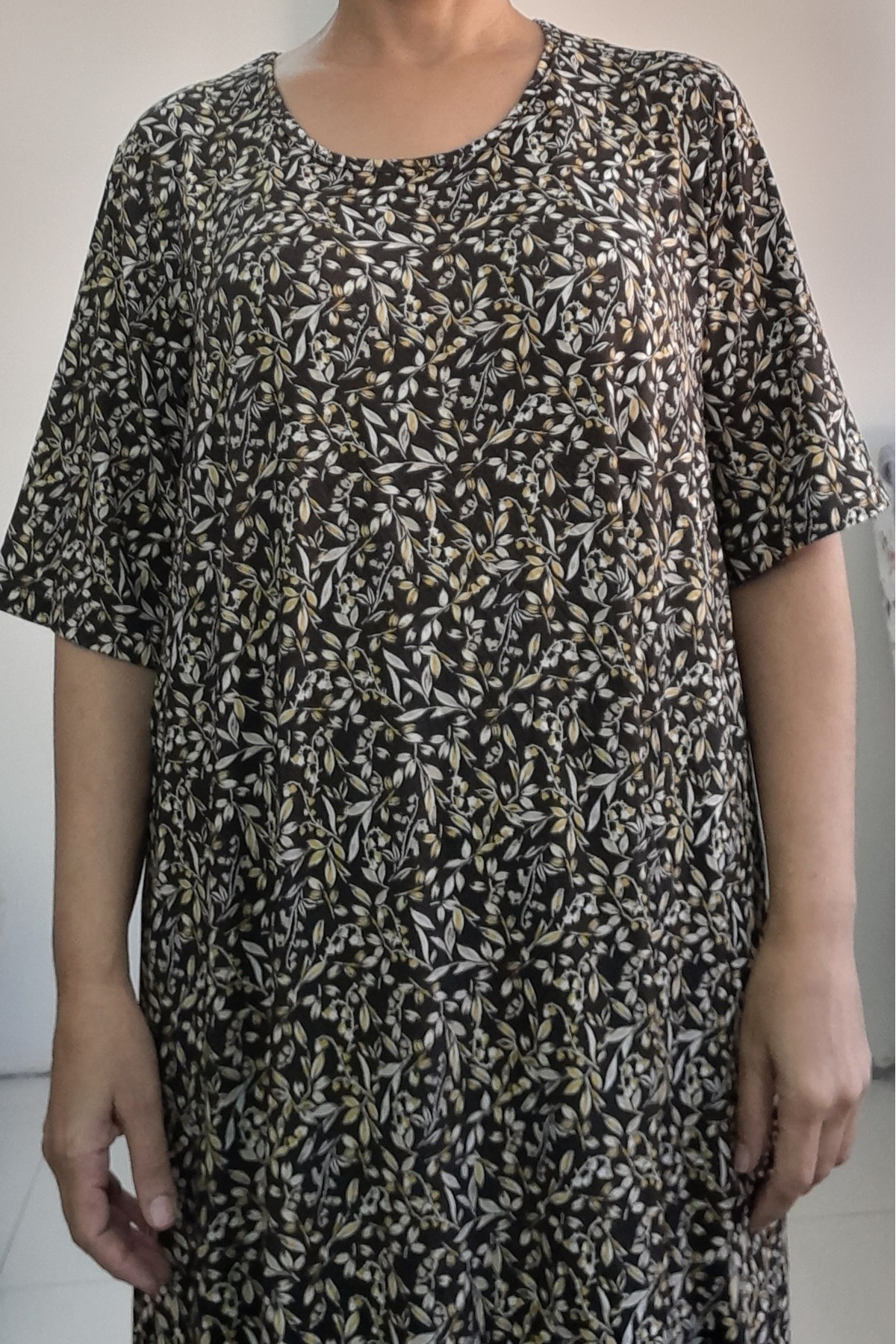 Kahverengi sarı çiçek desenli kısa kollu penye viskon elbise Kahverengi sarı çiçek desenli kısa kollu penye viskon elbise Mertcanbutik451018 62-64