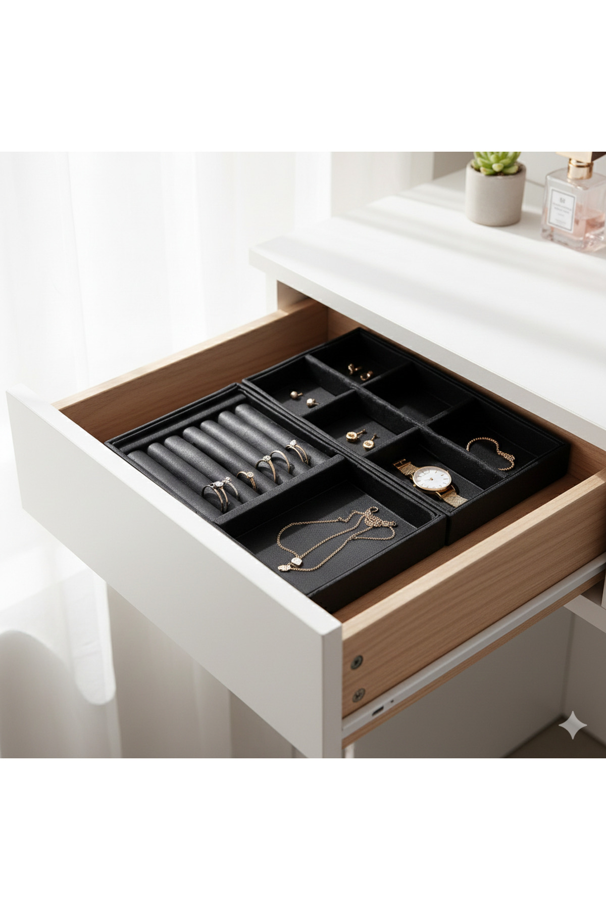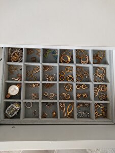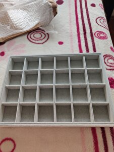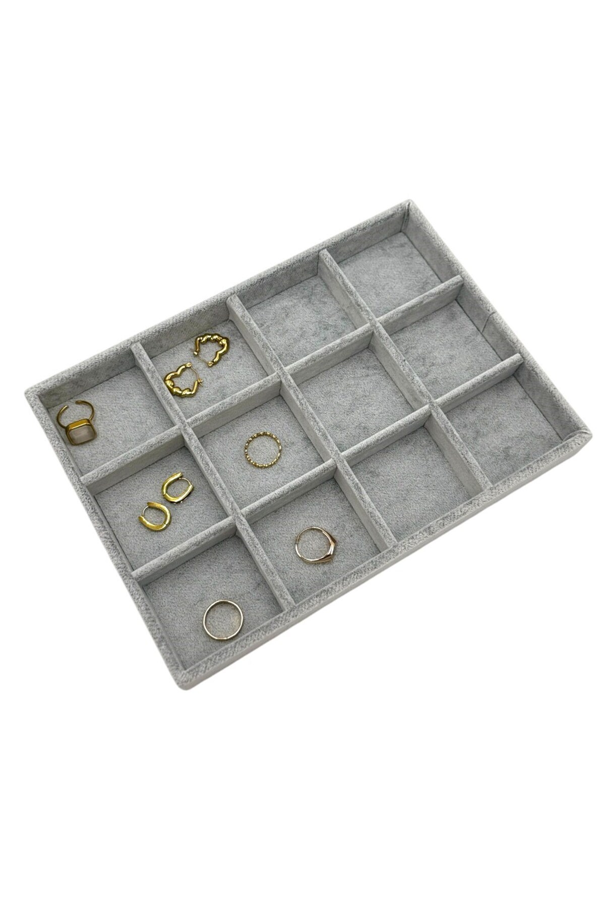 24 Bölmeli Kolye Ucu Küpe Yüzük Servis Tablası Gri Süet 24 Bölmeli Kolye Ucu Küpe Yüzük Servis Tablası Gri Süet SAAT05G24 تک سایز