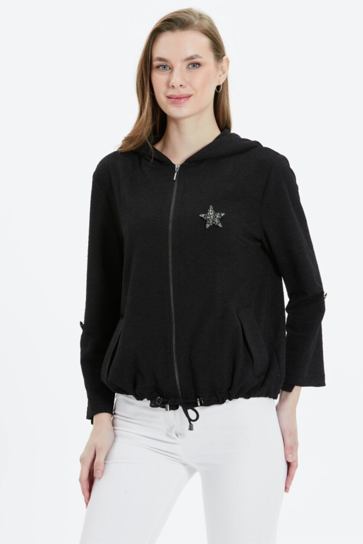 Önü Fermuarlı Kapüşonlu Aksesuarlı Ceket Önü Fermuarlı Kapüşonlu Aksesuarlı Ceket 24YSL1320 44