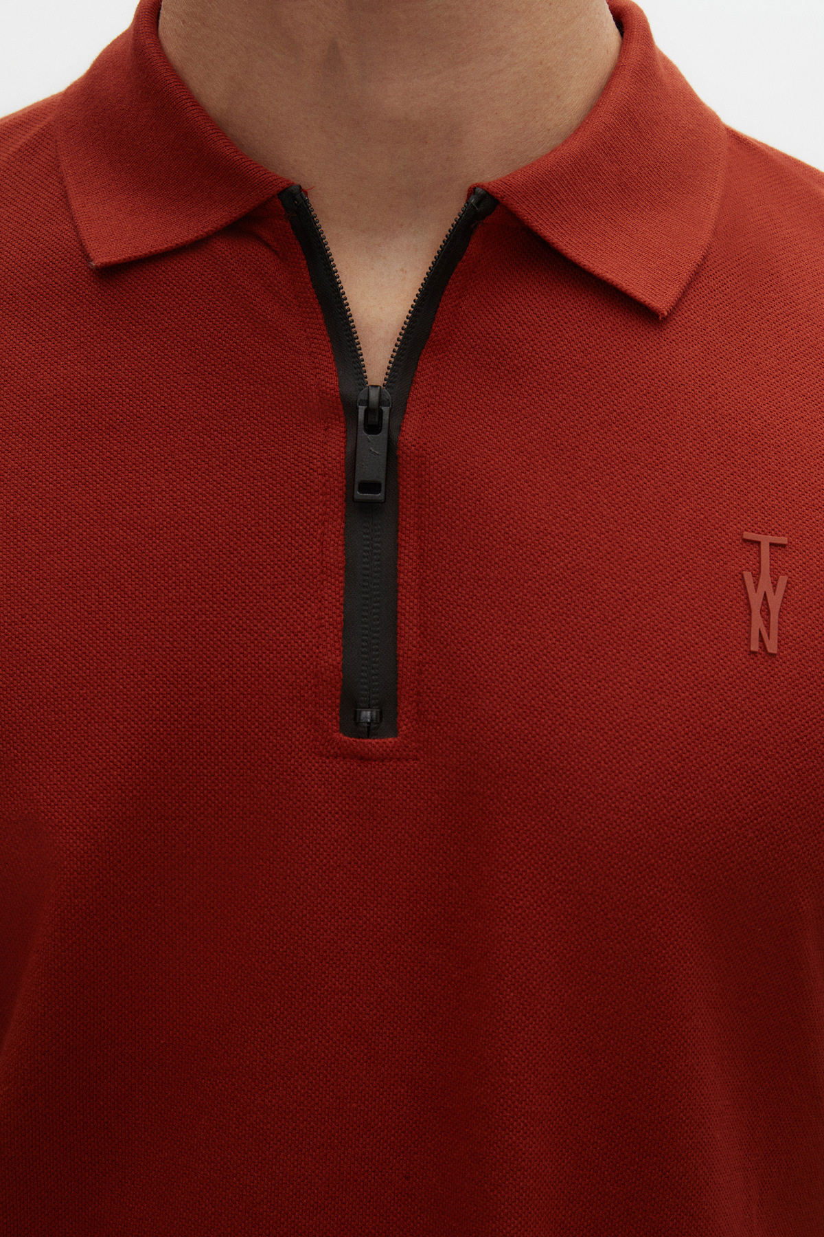 Slim Fit Kiremit Pike Dokulu Yarım Fermuarlı Polo Yaka Yazlık T-Shirt Slim Fit Kiremit Pike Dokulu Yarım Fermuarlı Polo Yaka Yazlık T-Shirt 4EC14ORTFRPLO 4XL