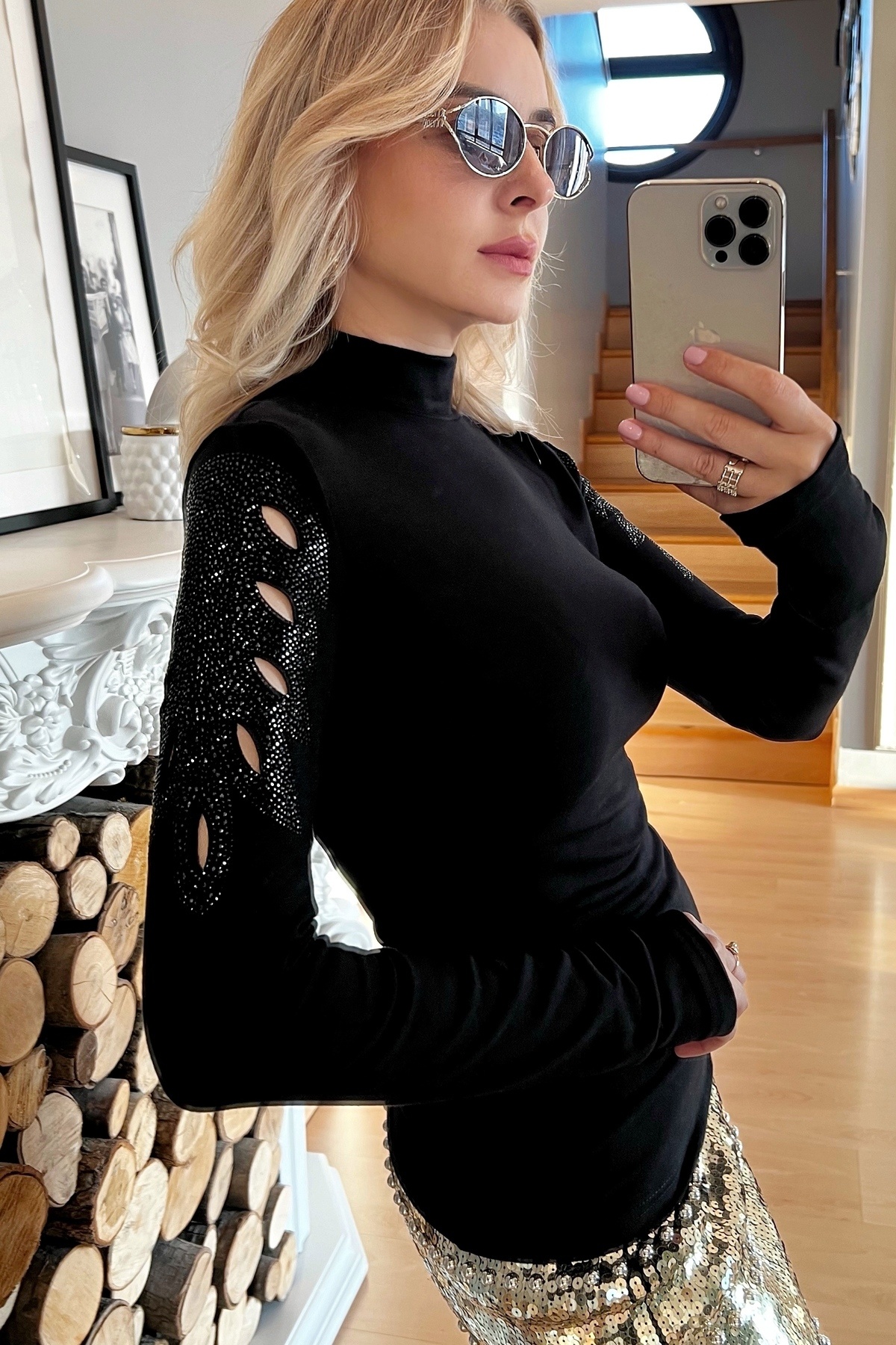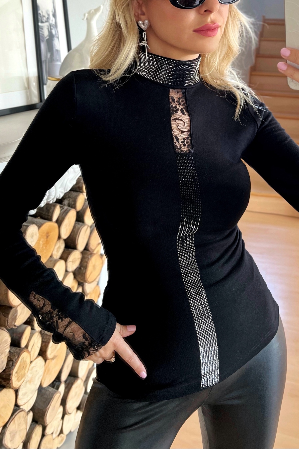 Uzun Kollu Boğazlı Kadın Büyük Beden Crystal Taşlı Likralı Şık Rahat Tasarım Siyah Bluz Uzun Kollu Boğazlı Kadın Büyük Beden Crystal Taşlı Likralı Şık Rahat Tasarım Siyah Bluz 807 3XL