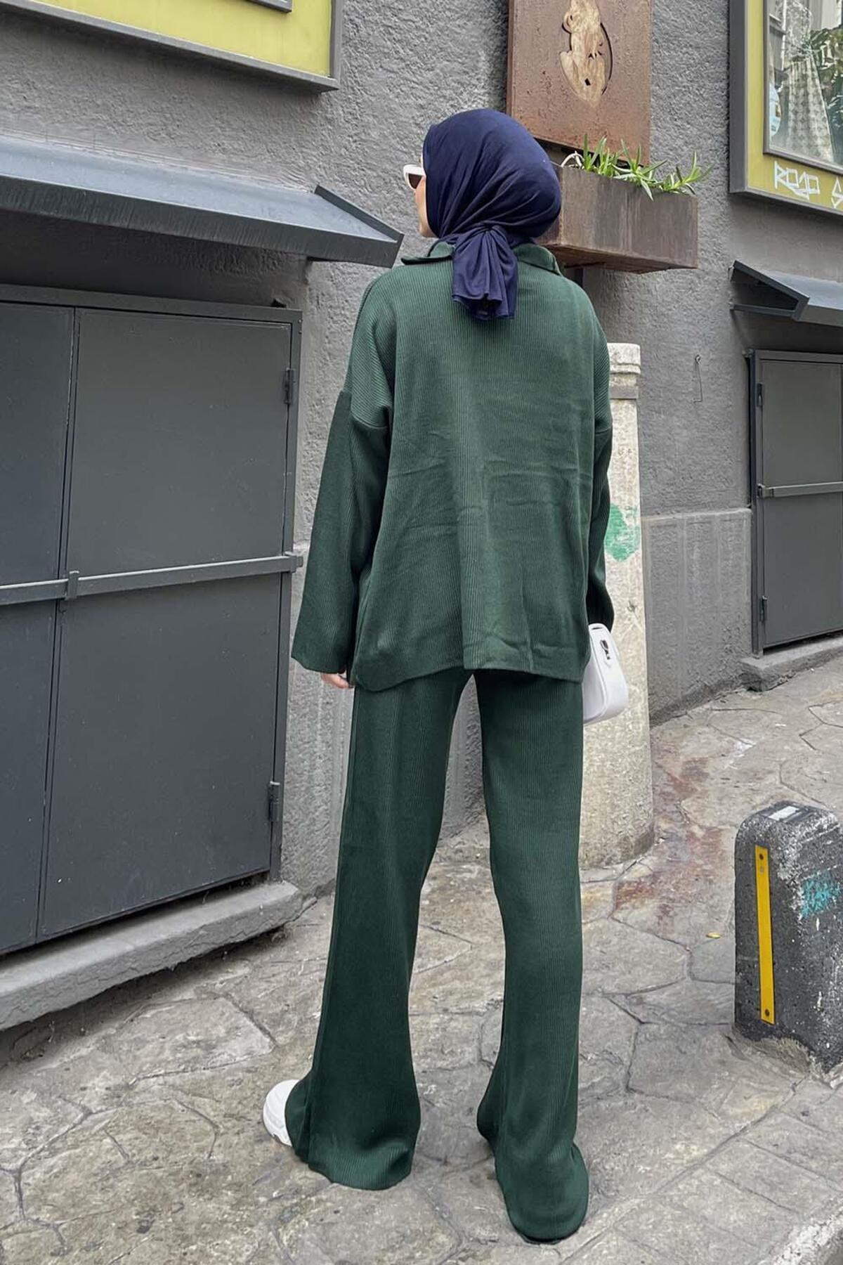 Selanik Pantalonlu Tesettür Takım Zümrüt Yeşili Selanik Pantalonlu Tesettür Takım Zümrüt Yeşili REY5132 تک سایز