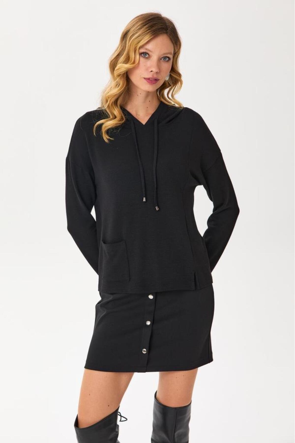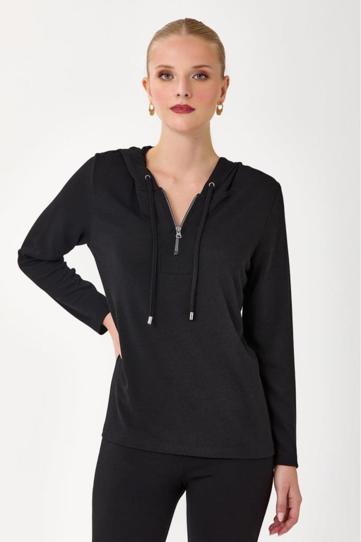 Yakası Fermuarlı Kapüşonlu Bluz 245-1001 Yakası Fermuarlı Kapüşonlu Bluz 245-1001 2XL