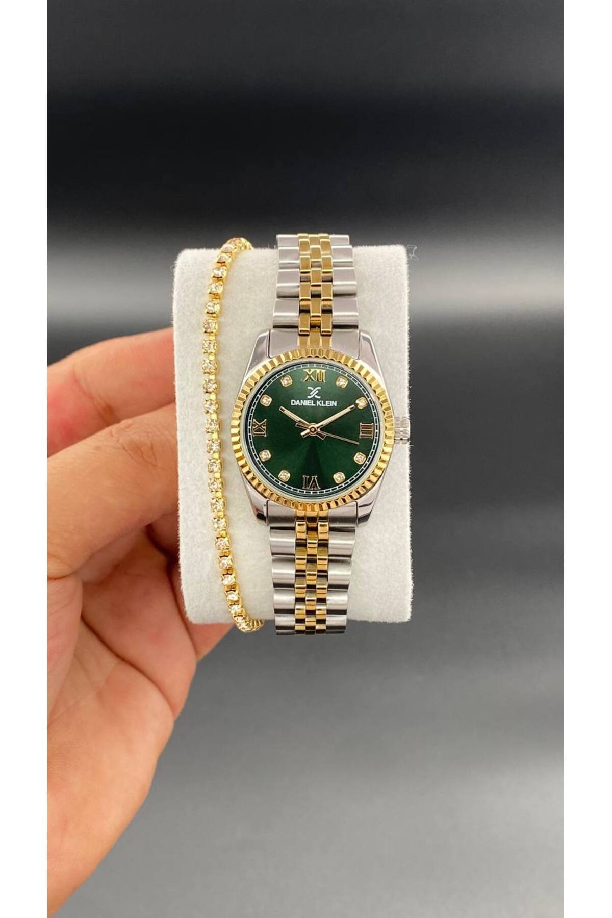 Kadın Kol Saati Çelik kordon 3 ATM Su Geçirmez Gold Gümüş Yeşil Renk Kadın Kol Saati Çelik kordon 3 ATM Su Geçirmez Gold Gümüş Yeşil Renk DK102-DK.1.13789-4 تک سایز