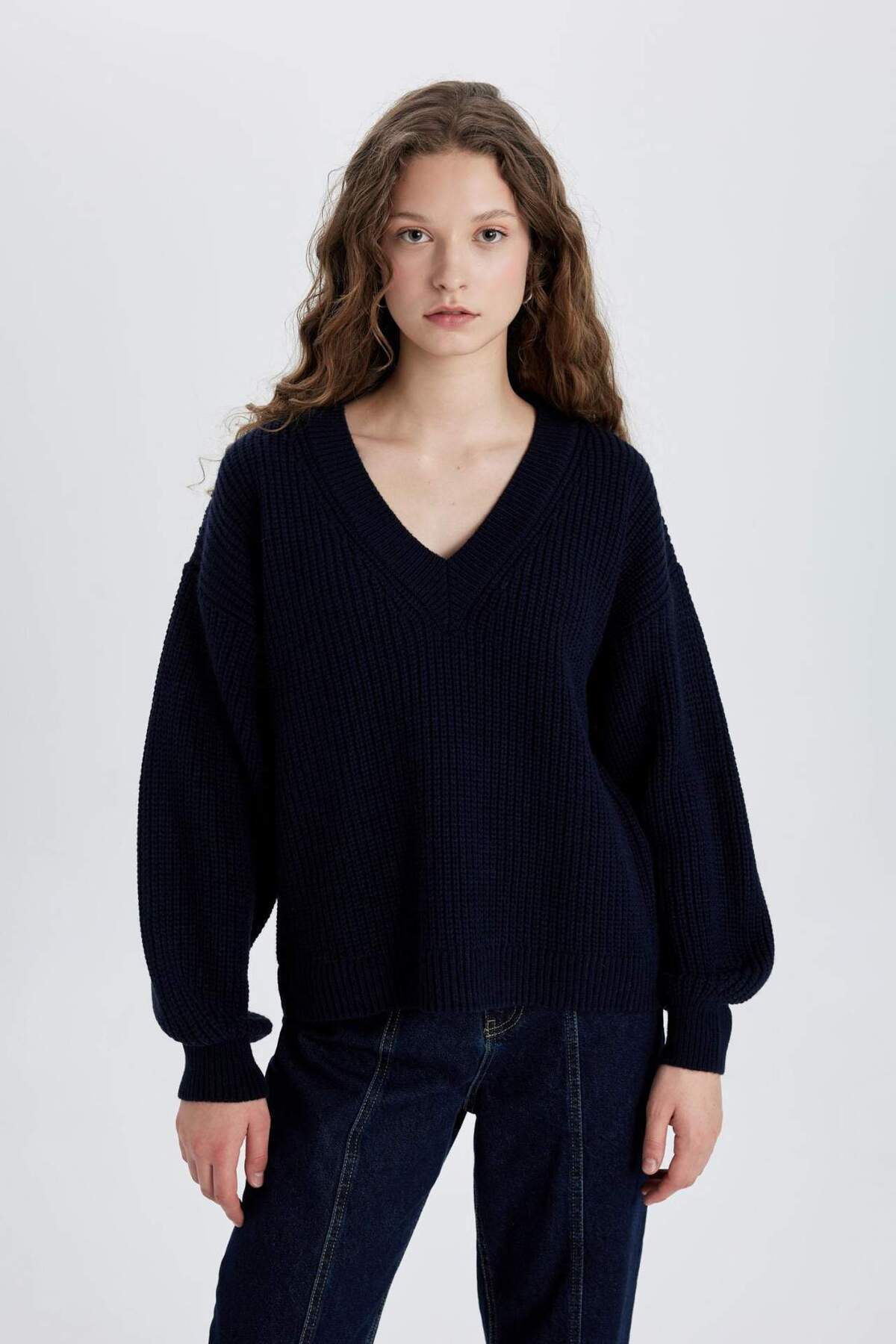 Okula Dönüş Oversize Geniş Kalıp V Yaka Triko Kazak Z7135AZ24WN Okula Dönüş Oversize Geniş Kalıp V Yaka Triko Kazak Z7135AZ24WN XL