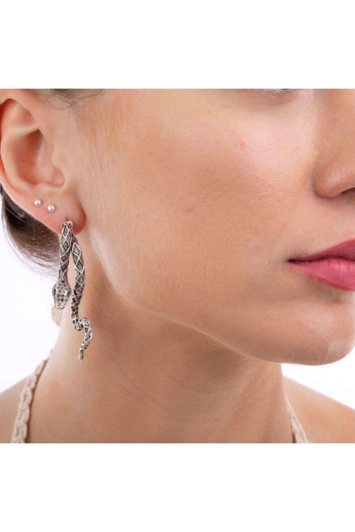 Desenli Yılan Şekilli Kadın Küpe Çift Adet Gümüş Kaplama El Yapımı Kadın Küpe Desenli Yılan Şekilli Kadın Küpe Çift Adet Gümüş Kaplama El Yapımı Kadın Küpe 8888880010052 تک سایز