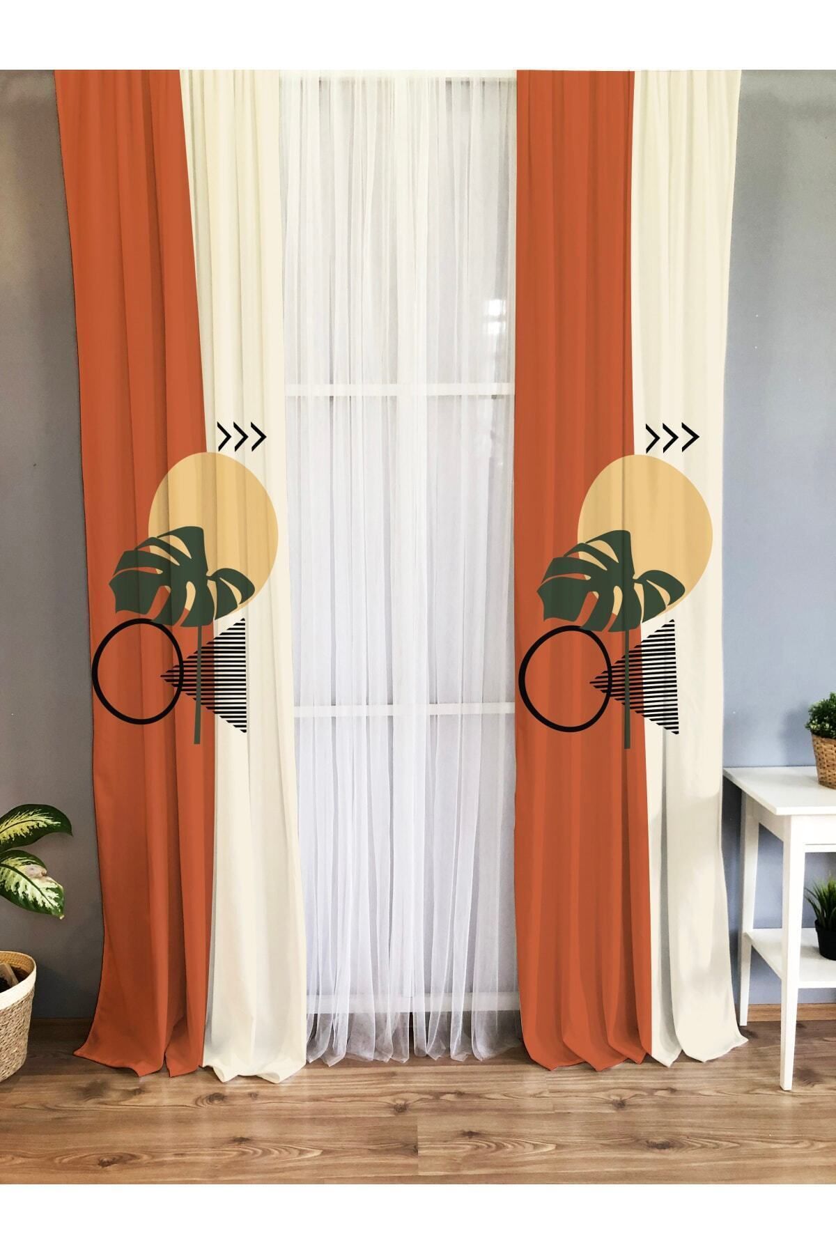 Kahverengi Etnik Desenli Mutfak ,Salon,Yatak Ve Çocuk Odası Tek Kanat Kadife Doku Fon Perde Kahverengi Etnik Desenli Mutfak ,Salon,Yatak Ve Çocuk Odası Tek Kanat Kadife Doku Fon Perde 56468 70 x 260