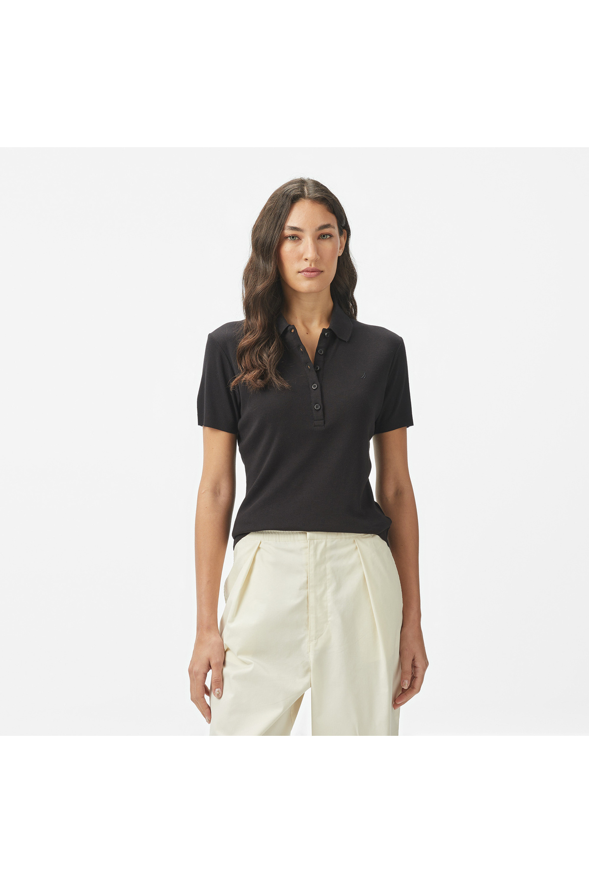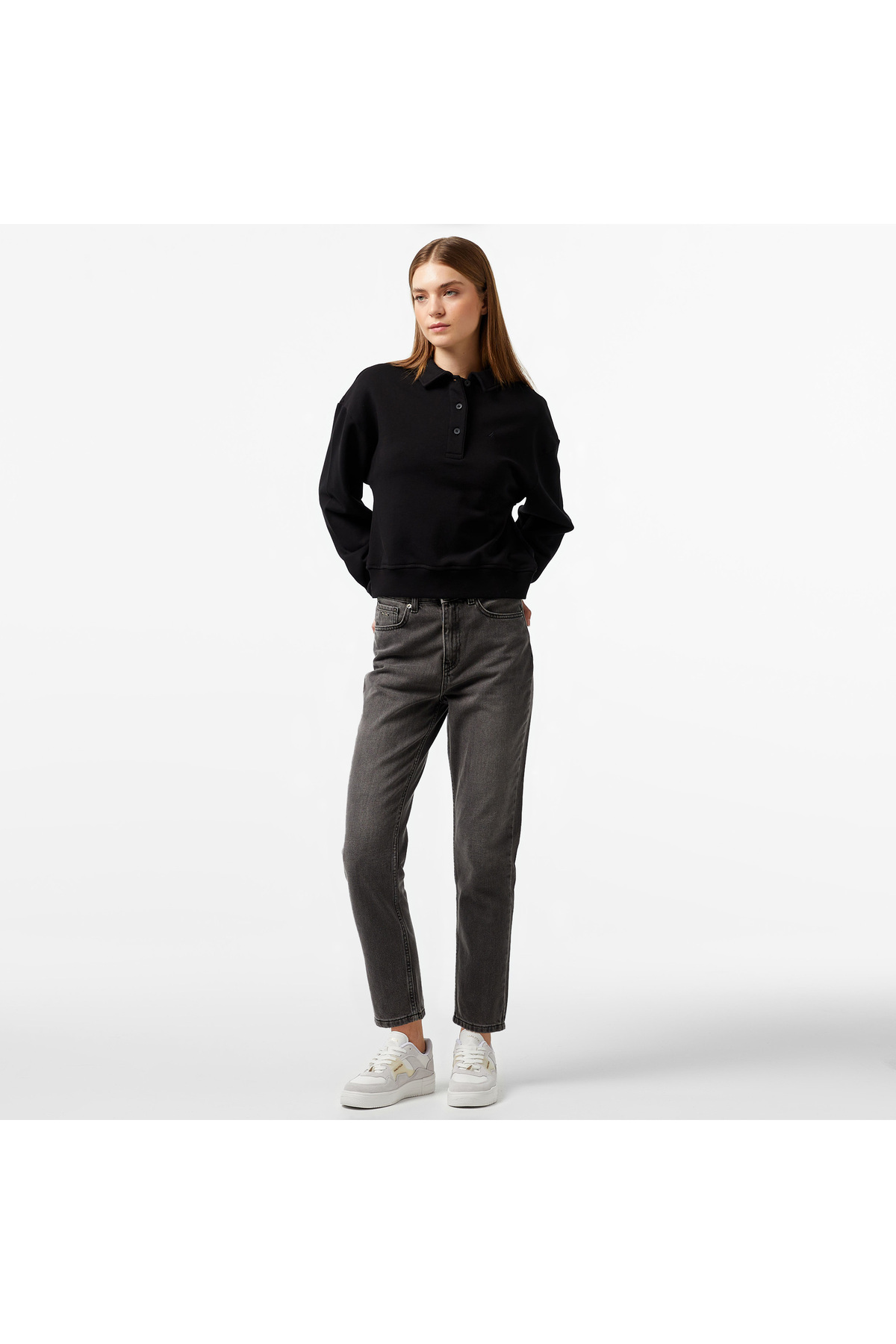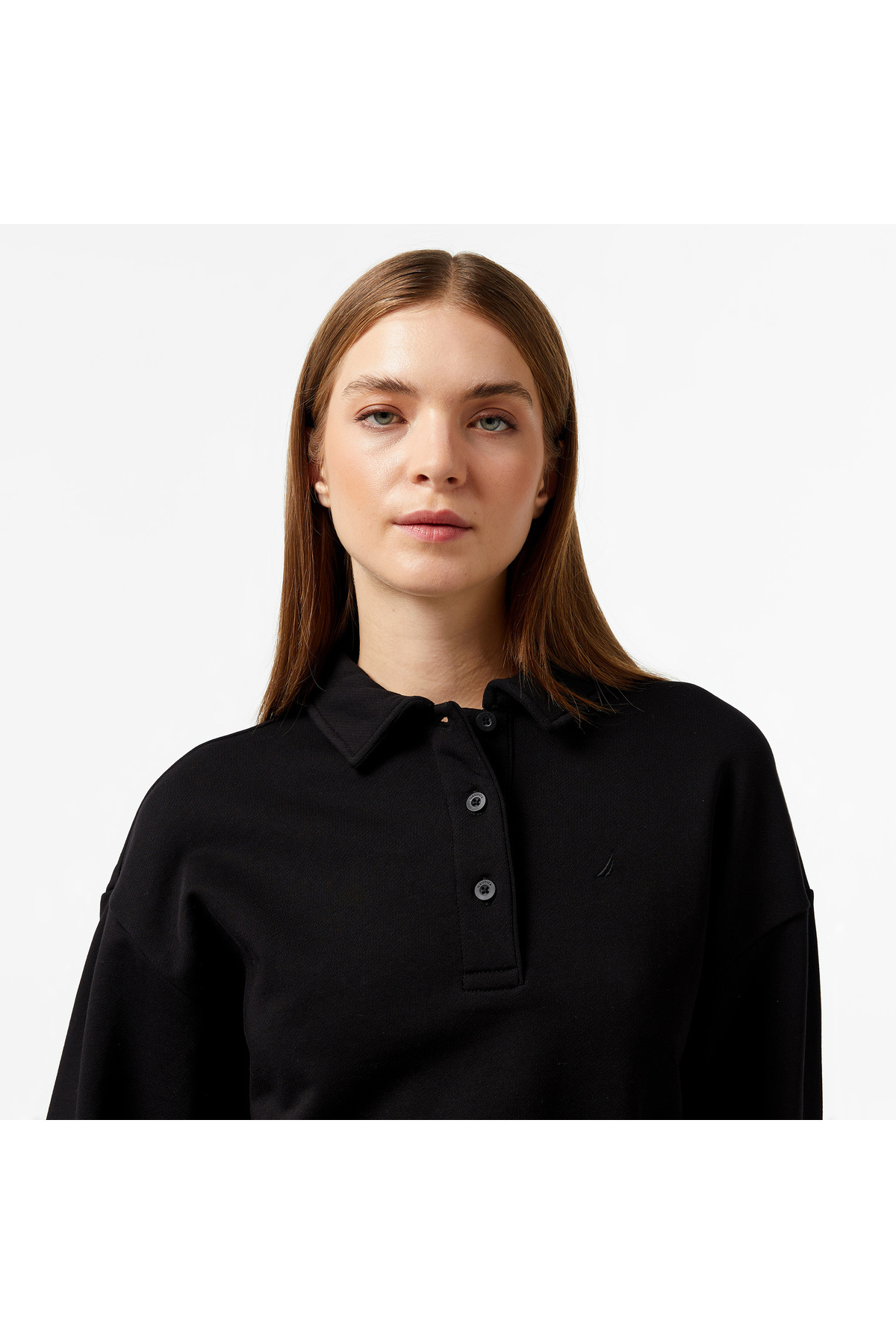Kadın Siyah Oversize Uzun Kollu Polo Yaka T-Shirt Kadın Siyah Oversize Uzun Kollu Polo Yaka T-Shirt 47K203T L