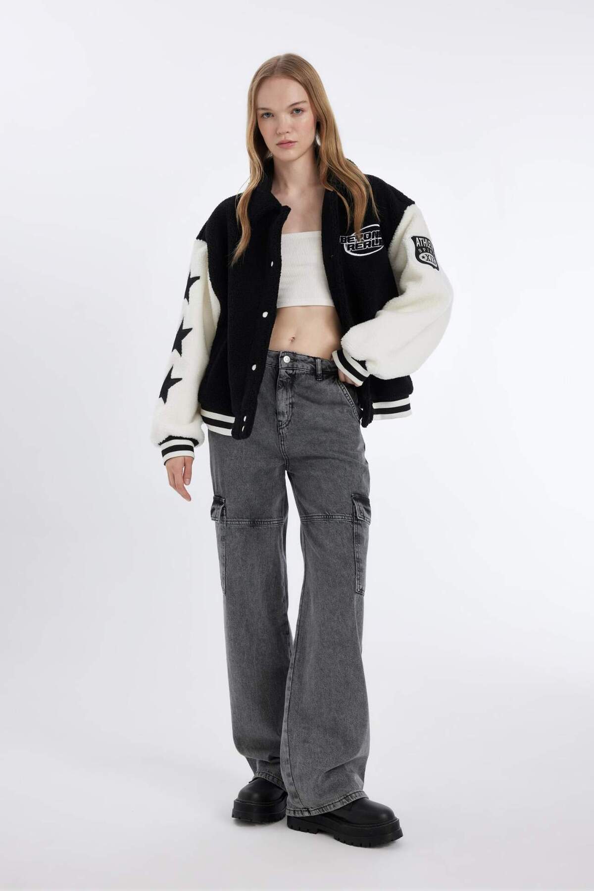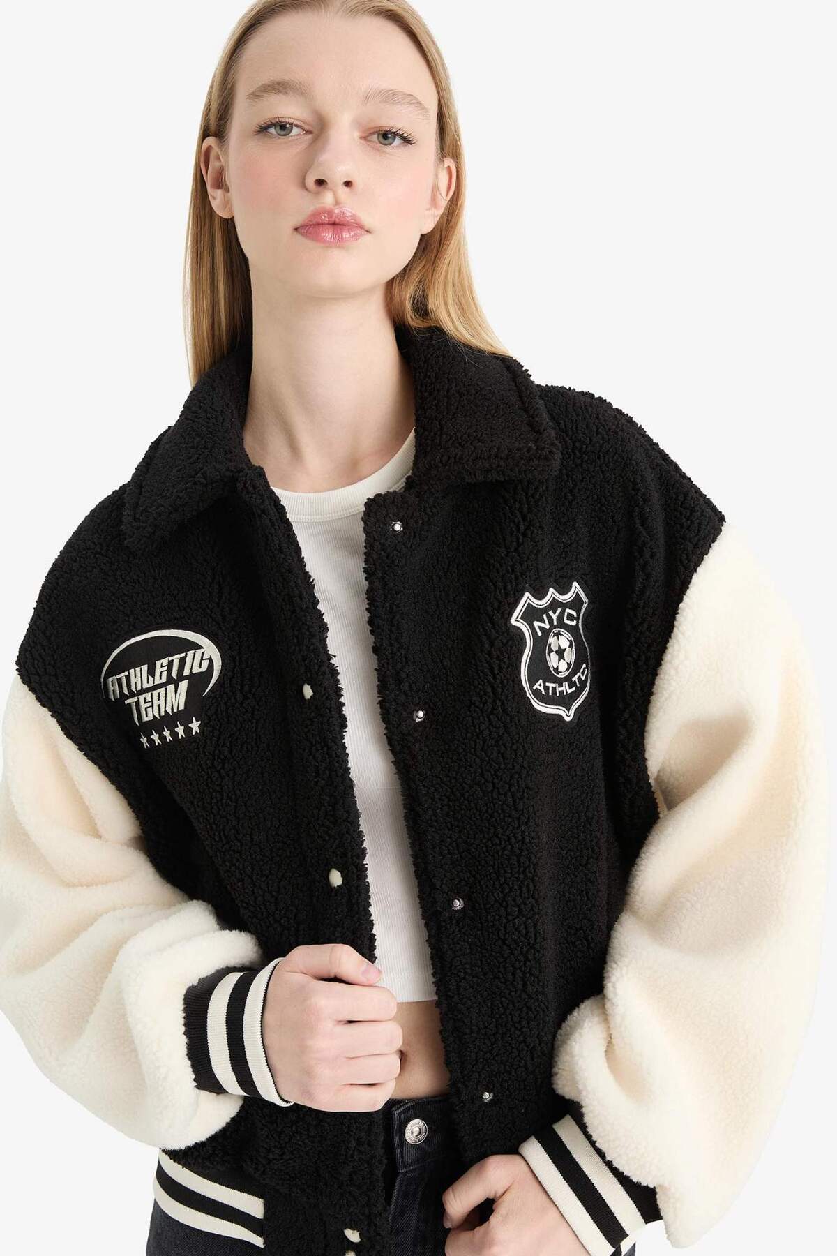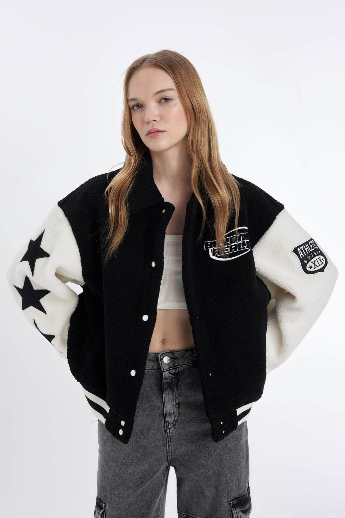 Coool Oversize Geniş Kalıp Pelüş Bomber Mont Ceket Polo Yaka Nakışlı Çıtçıtlı Cepli C8001AX24WN Coool Oversize Geniş Kalıp Pelüş Bomber Mont Ceket Polo Yaka Nakışlı Çıtçıtlı Cepli C8001AX24WN XL