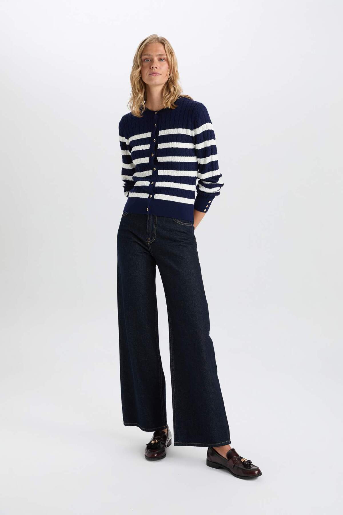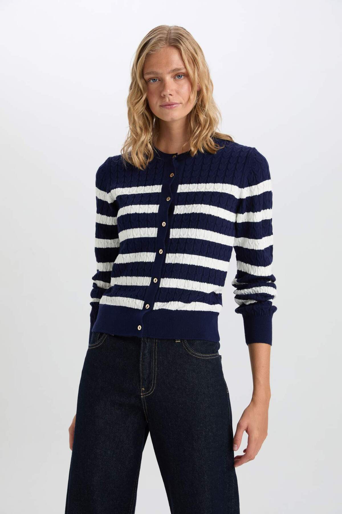 Regular Fit Çizgili Bisiklet Yaka Düğmeli Triko Hırka A2138AX24WN Regular Fit Çizgili Bisiklet Yaka Düğmeli Triko Hırka A2138AX24WN 3XL