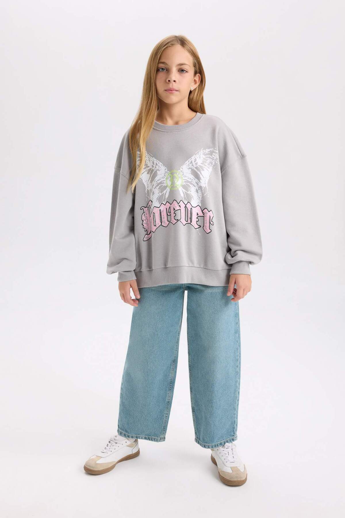 Kız Çocuk Gri Oversize Geniş Kalıp Bisiklet Yaka Sırt Baskılı Sweatshirt D6630A824AU Kız Çocuk Gri Oversize Geniş Kalıp Bisiklet Yaka Sırt Baskılı Sweatshirt D6630A824AU 13-14 Yaş