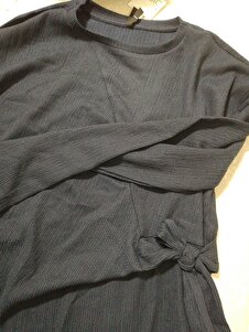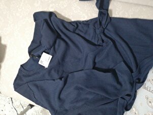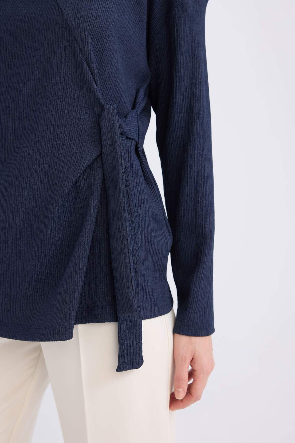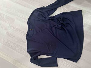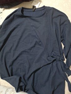 Bisiklet Yaka Bağlama Detaylı Casual Bürümcük Uzun Kollu Lacivert Tişört E1800AX24WN Bisiklet Yaka Bağlama Detaylı Casual Bürümcük Uzun Kollu Lacivert Tişört E1800AX24WN 3XL