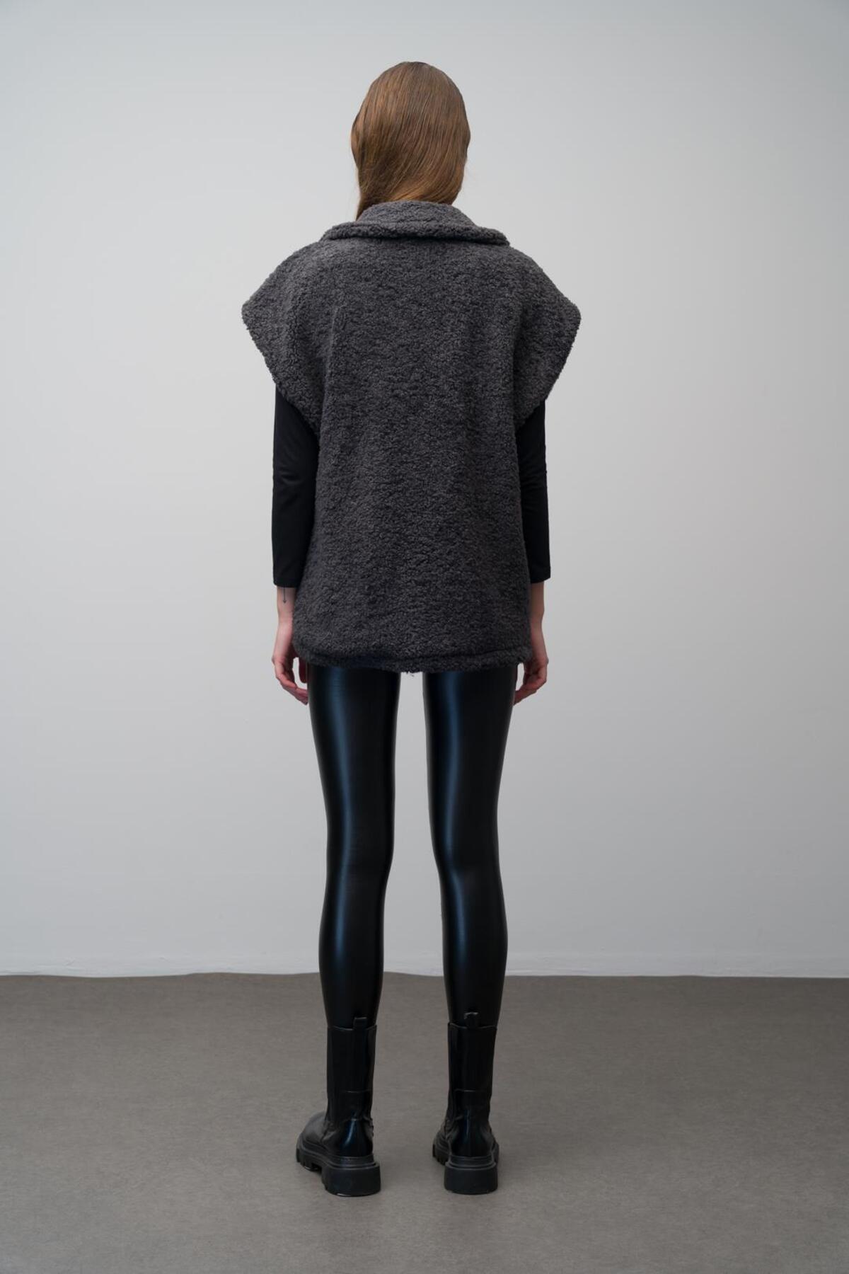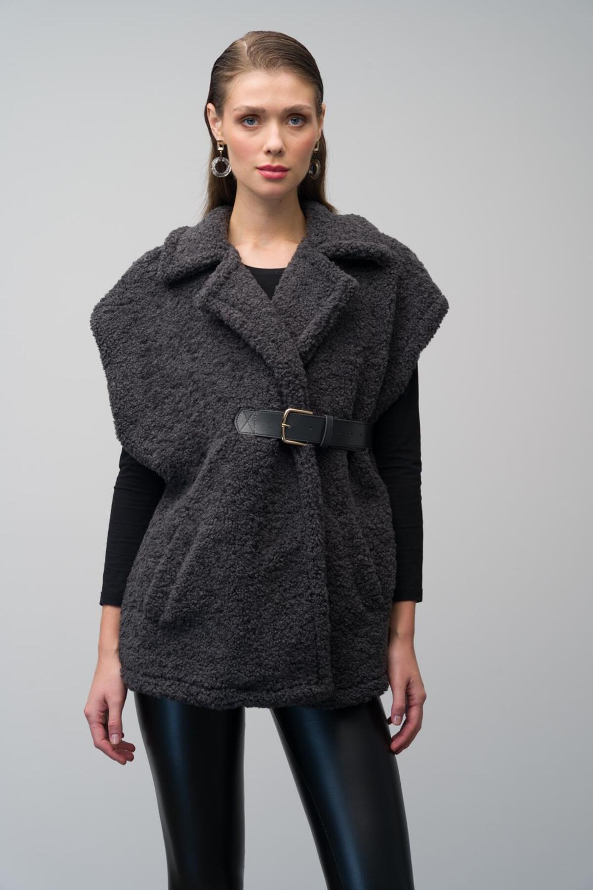 Deri Kemerli Astarlı Salaş Yelek ANTRASİT 8242 Deri Kemerli Astarlı Salaş Yelek ANTRASİT 8242 L/XL