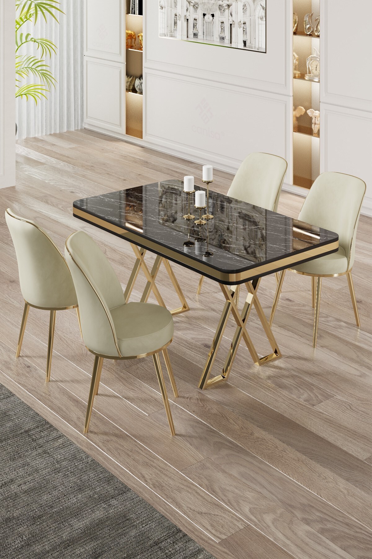 Vals Serisi 80x130 Lak Panel Siyah Mermer Desen Masa Takımı Gold Ayaklı 4 Krem Sandalye Vals Serisi 80x130 Lak Panel Siyah Mermer Desen Masa Takımı Gold Ayaklı 4 Krem Sandalye 22VLS01SYHMR04GLD تک سایز