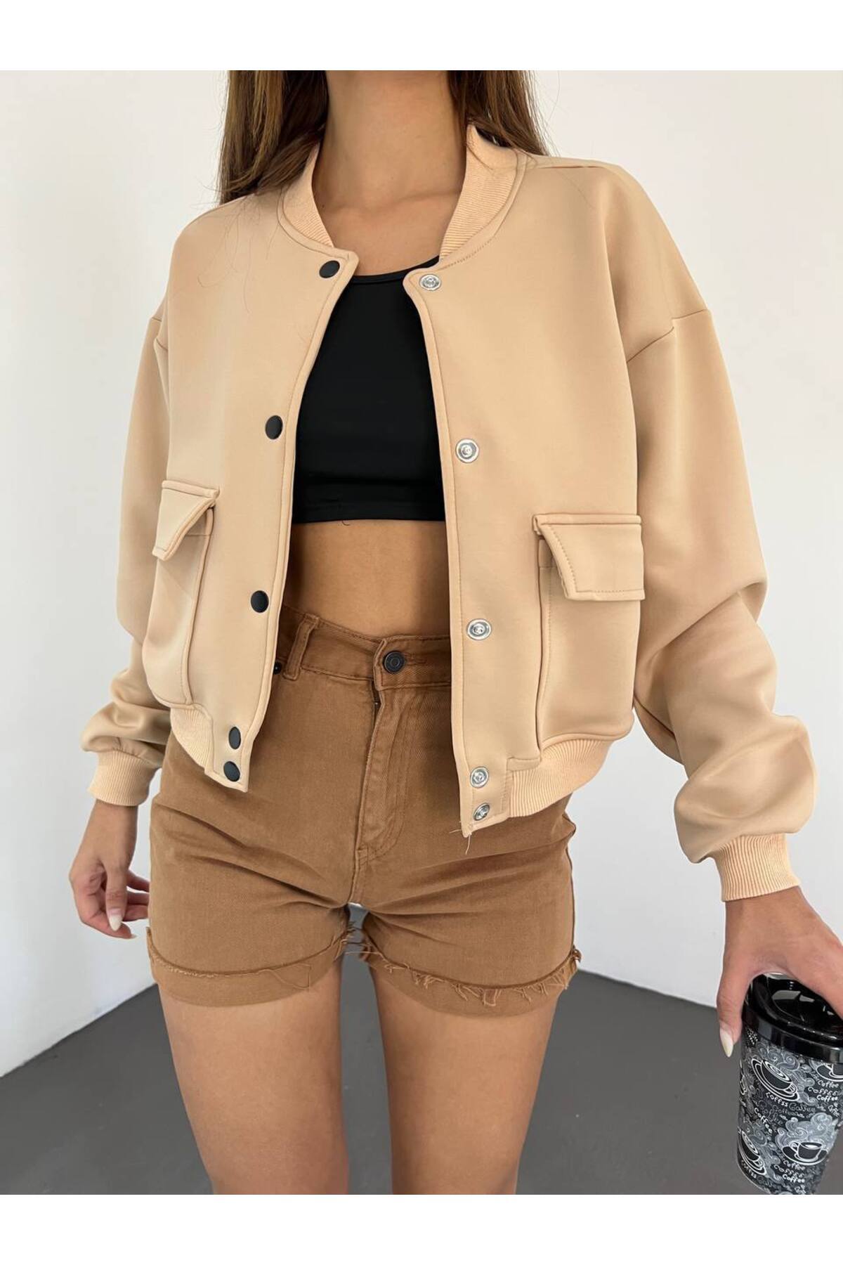 Palazzo Dalgıç Kumaş Çift Cepli Bomber Ceket Palazzo Dalgıç Kumaş Çift Cepli Bomber Ceket Dkç10922 L