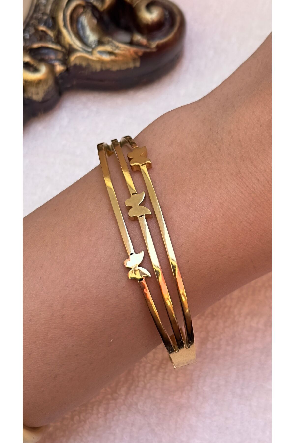 Kelebek Model Gold Modern Çelik Bileklik Kelepçe Kararmaz Solmaz 17cm - Yeni Sezon Trend Kelebek Model Gold Modern Çelik Bileklik Kelepçe Kararmaz Solmaz 17cm - Yeni Sezon Trend KHGL0304242 17 cm