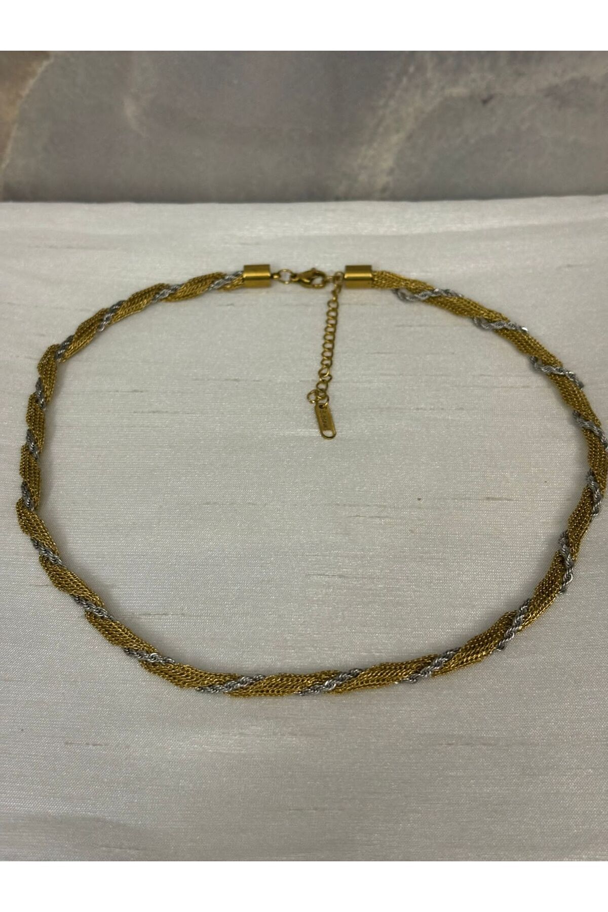 Altın ve Gümüş İki Renkli Hasır ve Burgu Sarmal Çelik Kolye KARARMAZ Altın ve Gümüş İki Renkli Hasır ve Burgu Sarmal Çelik Kolye KARARMAZ ÇLK-KLY-134 تک سایز