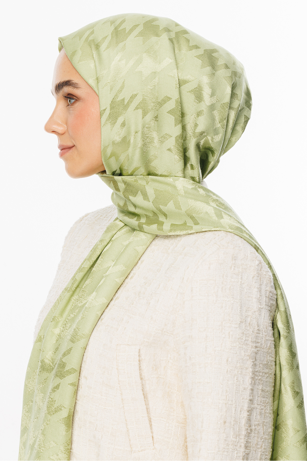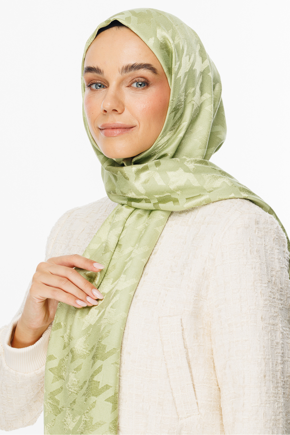 Fıstık Yeşili Kazayağı Desen Parlak Jakar Şal Fıstık Yeşili Kazayağı Desen Parlak Jakar Şal JKRMNC0017 75 x 185