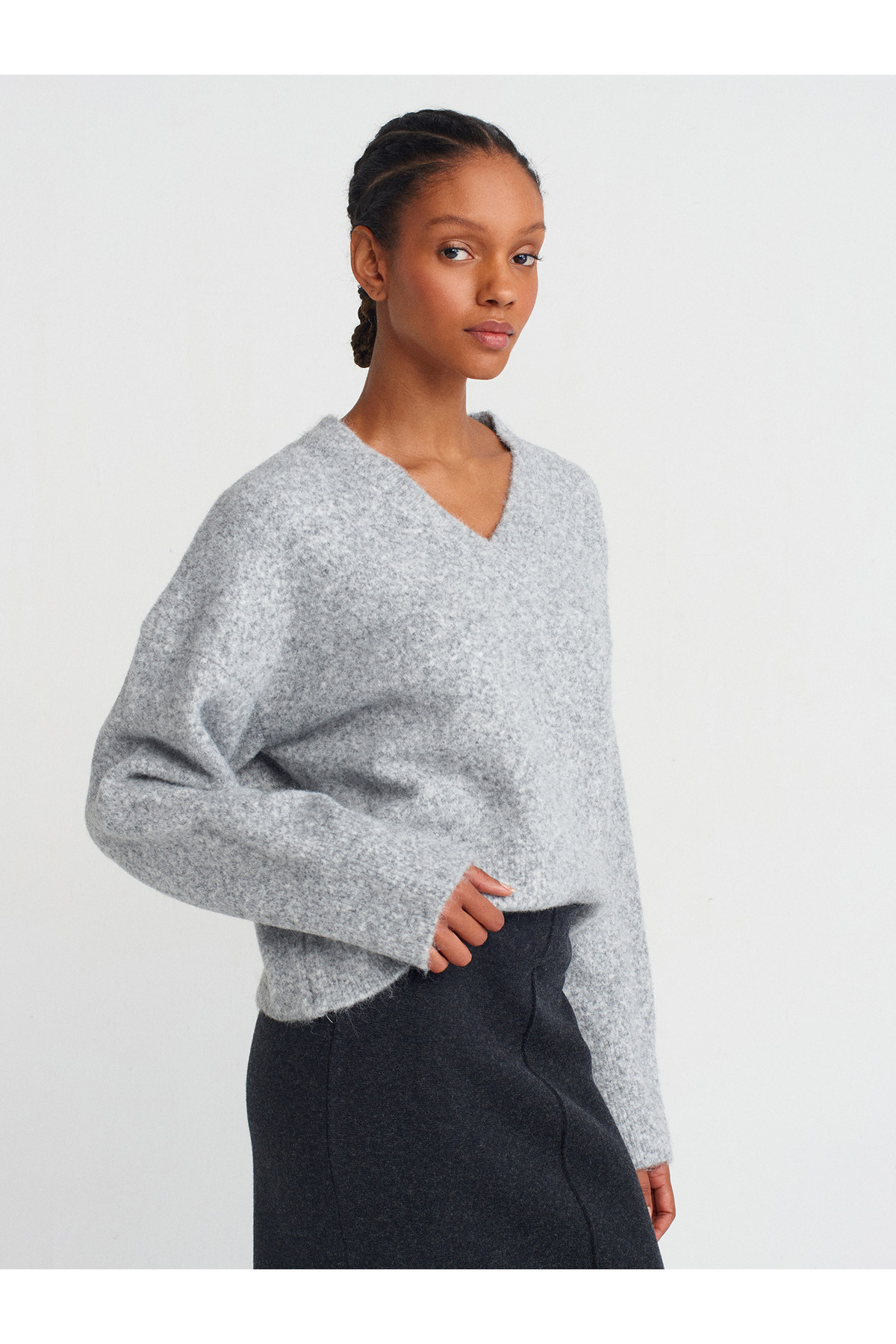 10645 V Yaka Yumuşak Dokulu Triko Kazak-Ekru 10645 V Yaka Yumuşak Dokulu Triko Kazak-Ekru TYC0861665947M101A1064009 Standart