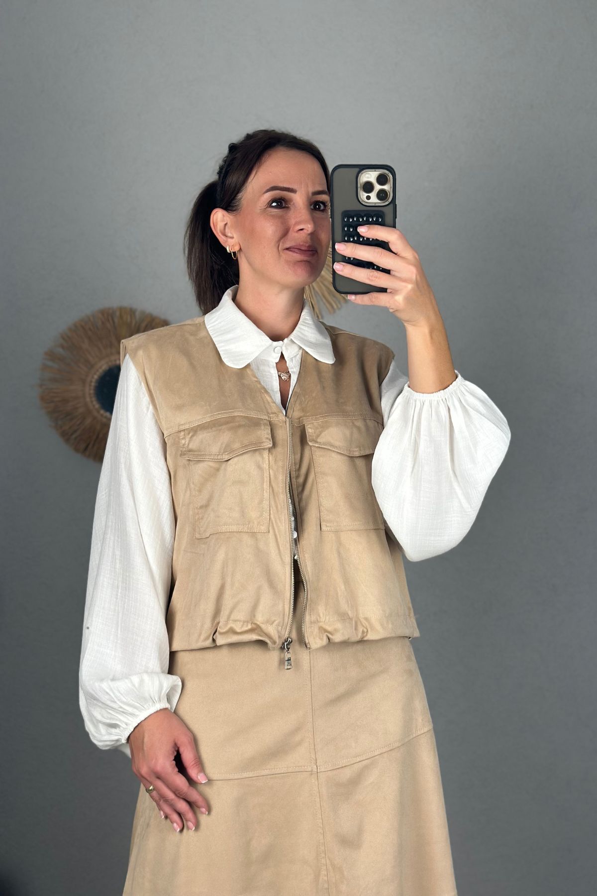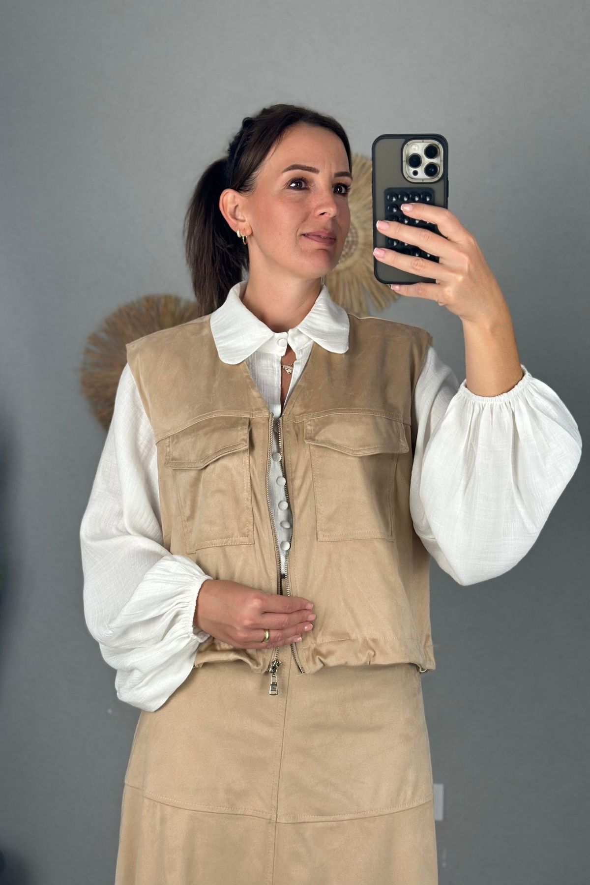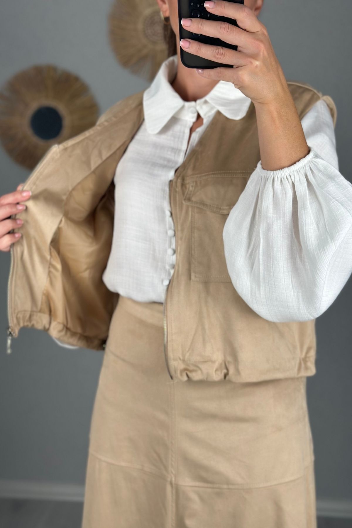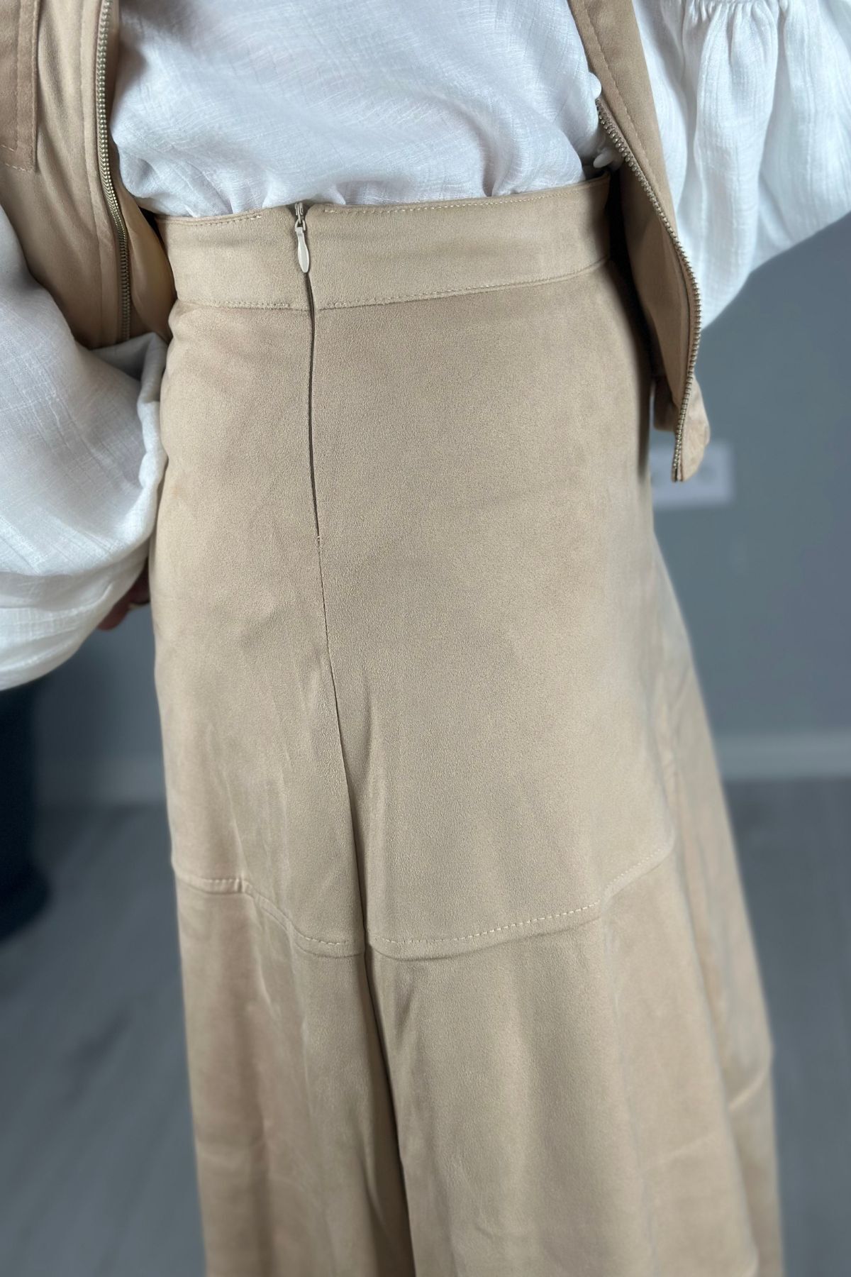 Kadın Nubuk Yelek Etek Takım Bej Kadın Nubuk Yelek Etek Takım Bej 48-100 XL