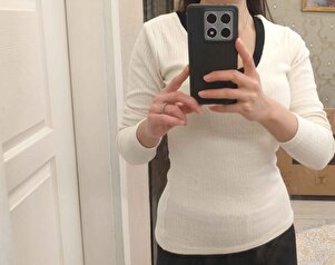 Kadın Beyaz Siyah Yaka Detaylı Şardonlu Likralı Bluz BLZ-19002746 Kadın Beyaz Siyah Yaka Detaylı Şardonlu Likralı Bluz BLZ-19002746 L/XL