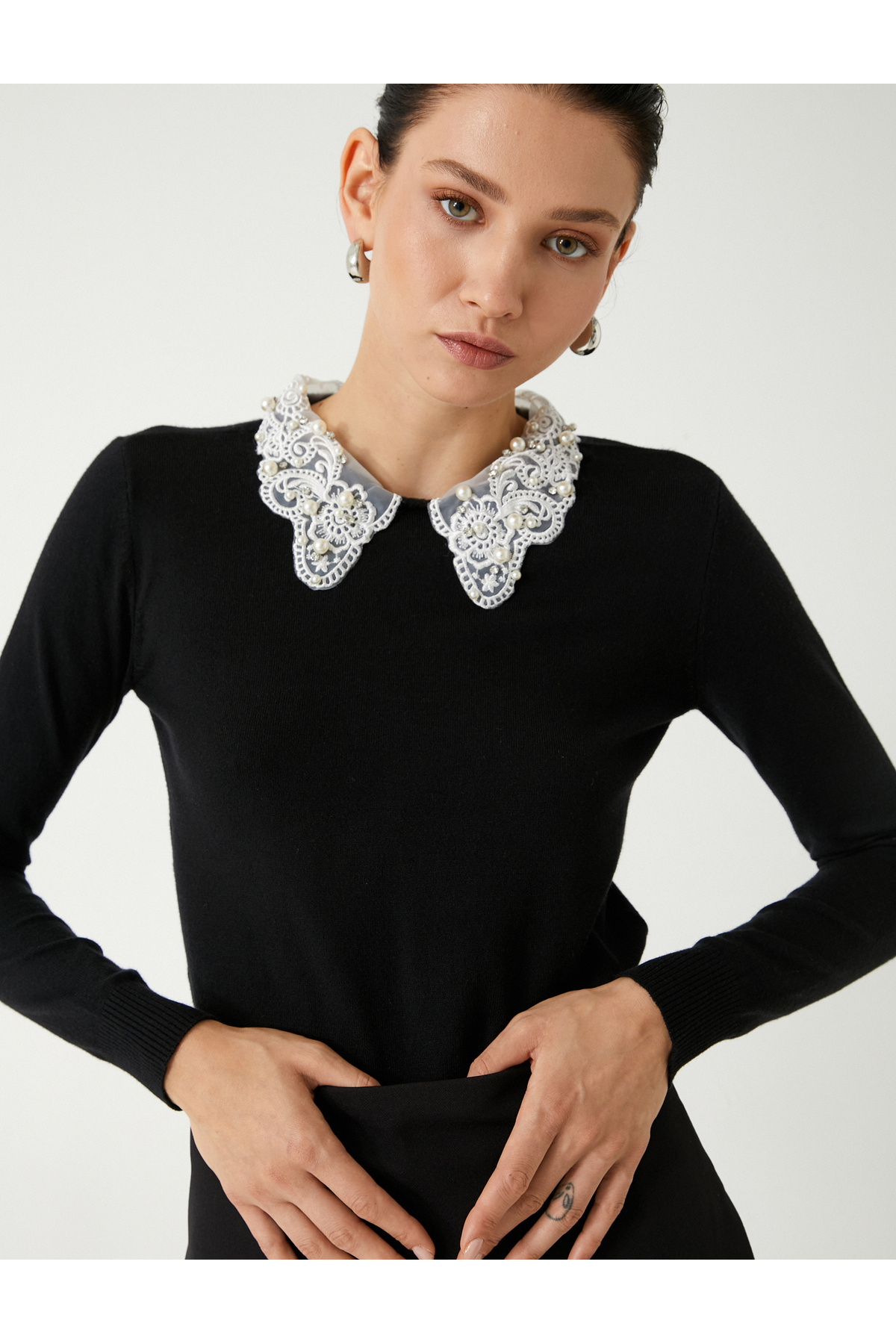 Taş İşlemeli Fonksiyonel Gömlek Yaka Siyah Triko Kazak Taş İşlemeli Fonksiyonel Gömlek Yaka Siyah Triko Kazak 2425W049800 L