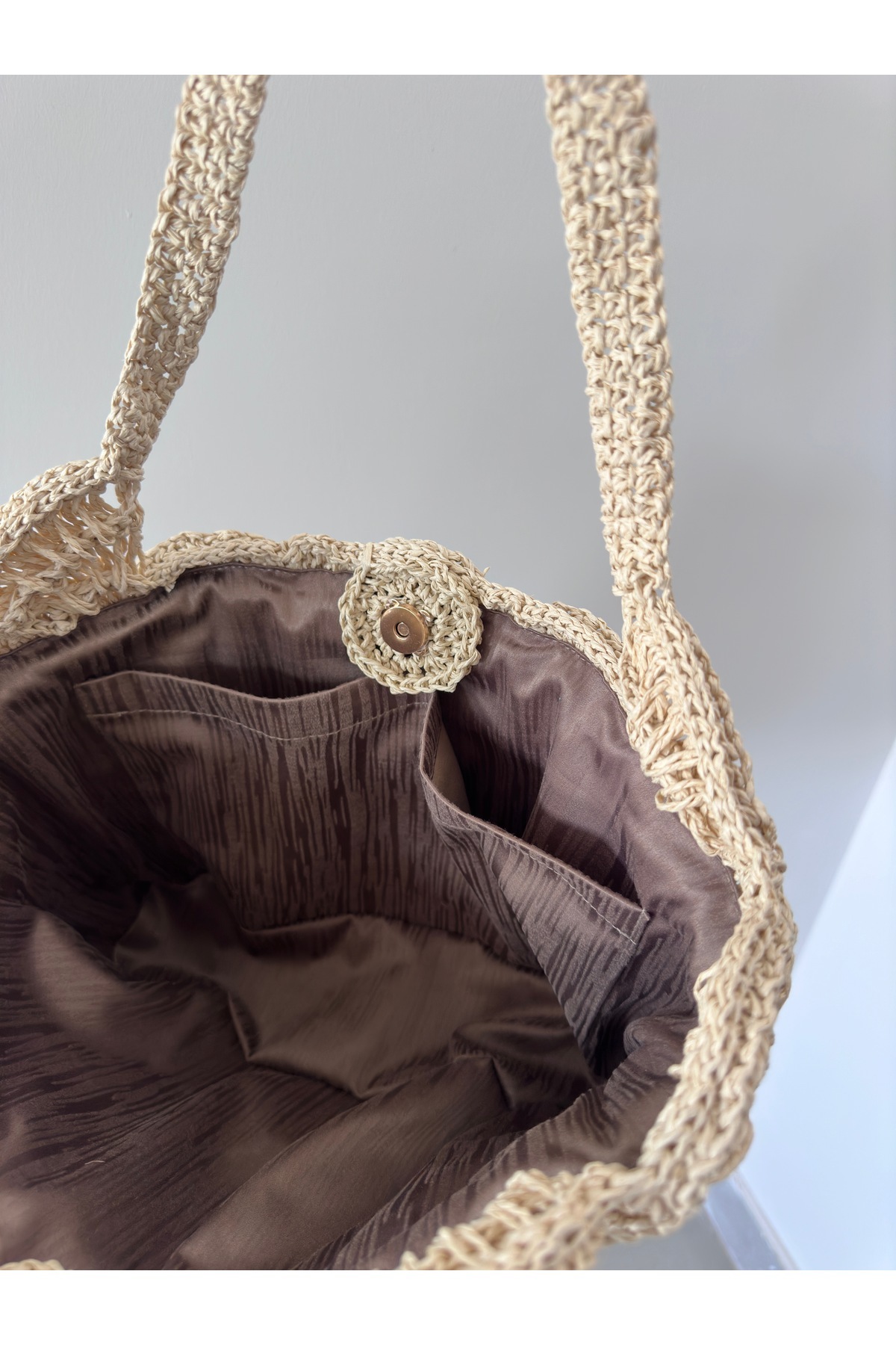 Kağıt Ip Örme Çanta / El Örgüsü Omuz Çantası / Saman Rengi Astarlı Çanta Kağıt Ip Örme Çanta / El Örgüsü Omuz Çantası / Saman Rengi Astarlı Çanta SM4102413 Standart