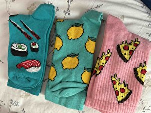 Pembe Pizza Desenli Tenis Çorap Pembe Pizza Desenli Tenis Çorap TN-1087-R402 37-44