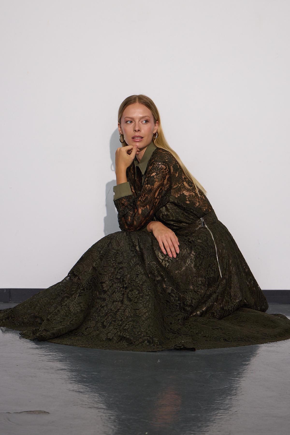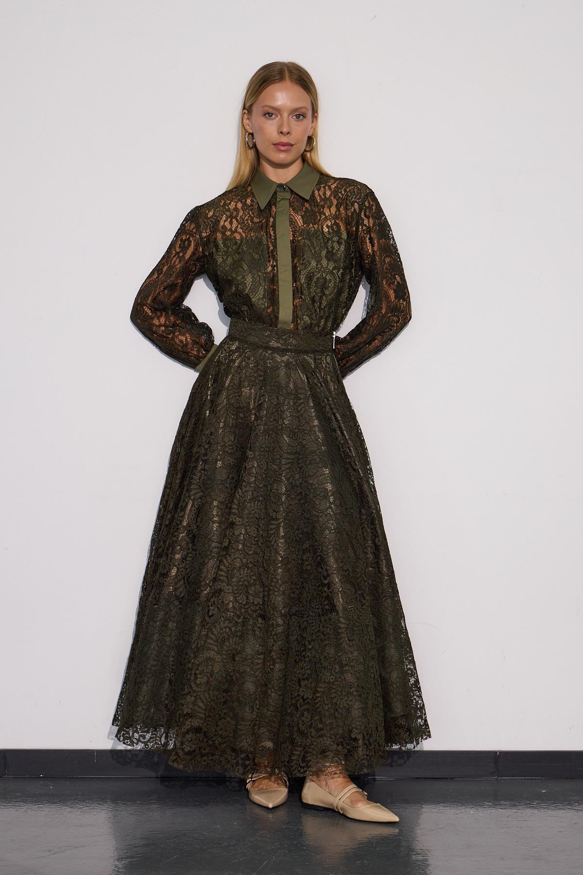 Lace Blossom Glow Maxi Boy Dantel Etek Haki Lace Blossom Glow Maxi Boy Dantel Etek Haki 24W8210 L