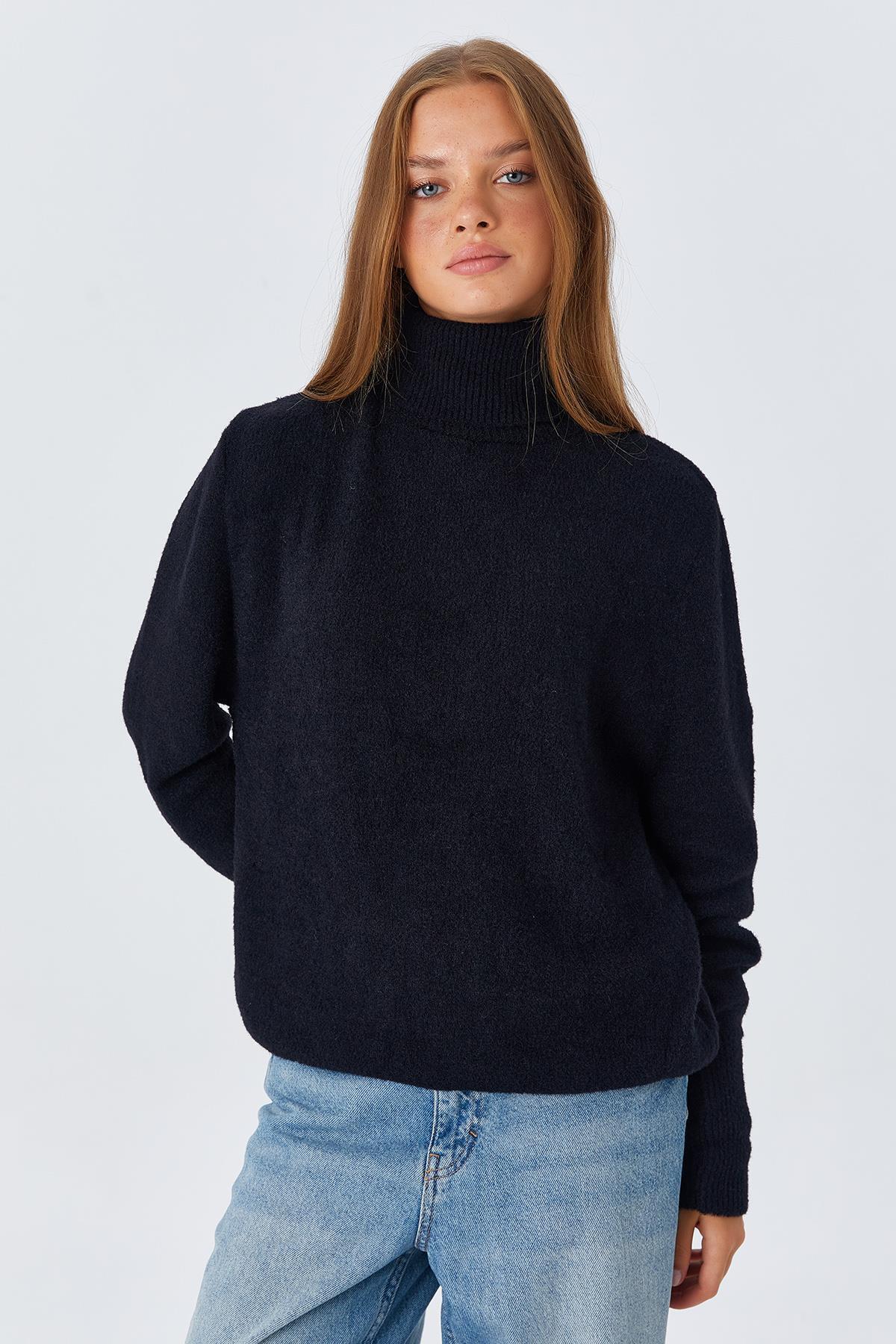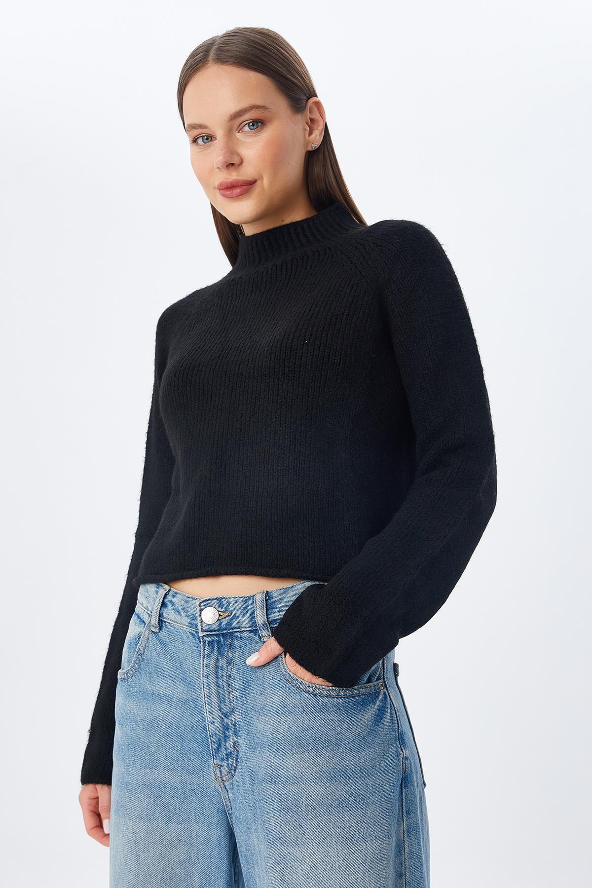 6854 Kadın Dik Yaka Bütün Crop Triko Kazak Siyah 6854 Kadın Dik Yaka Bütün Crop Triko Kazak Siyah K24KZK6854 Standart