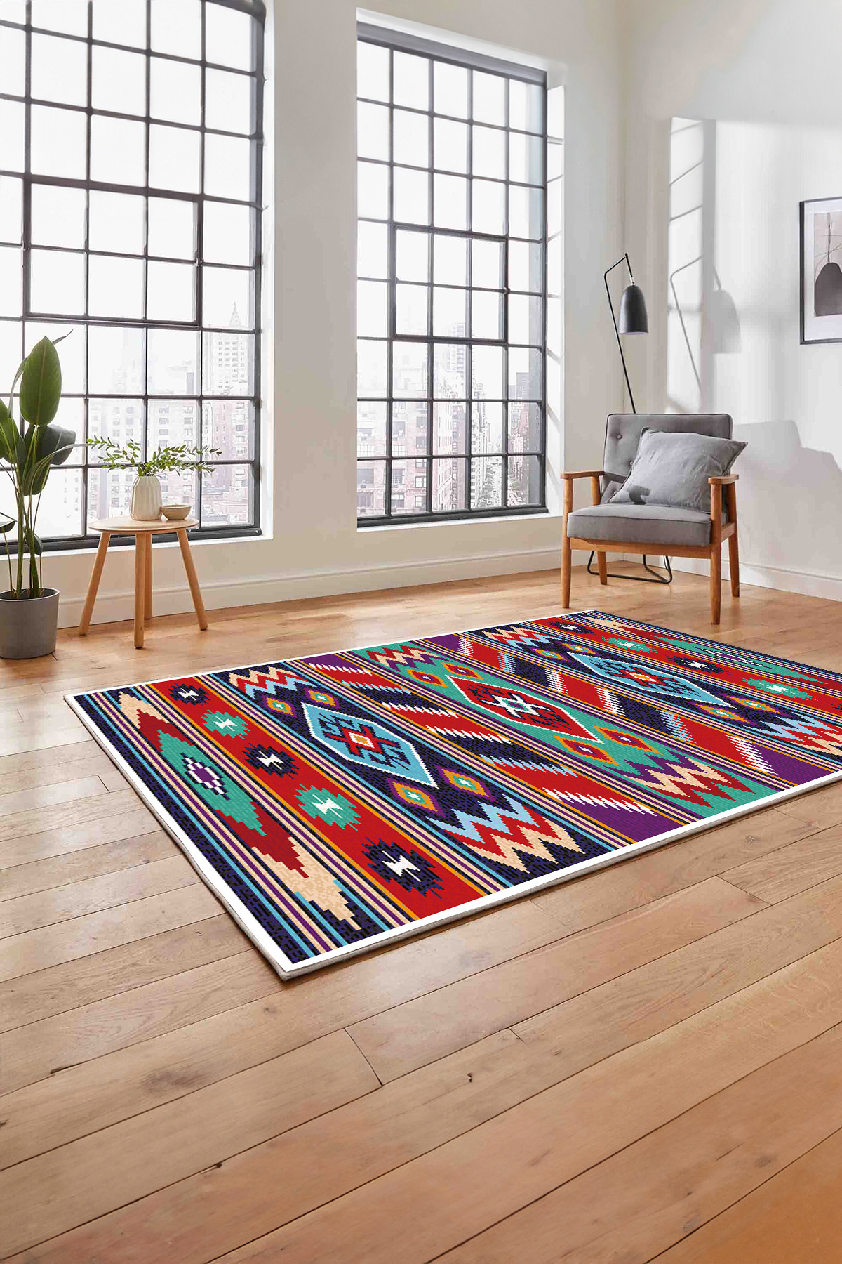 Etnik Kilim Desen Görünümlü Yıkanabilir Kaymaz Taban Yolluk Mutfak Salon Halısı Etnik Kilim Desen Görünümlü Yıkanabilir Kaymaz Taban Yolluk Mutfak Salon Halısı ETNİK-25 160 x 230