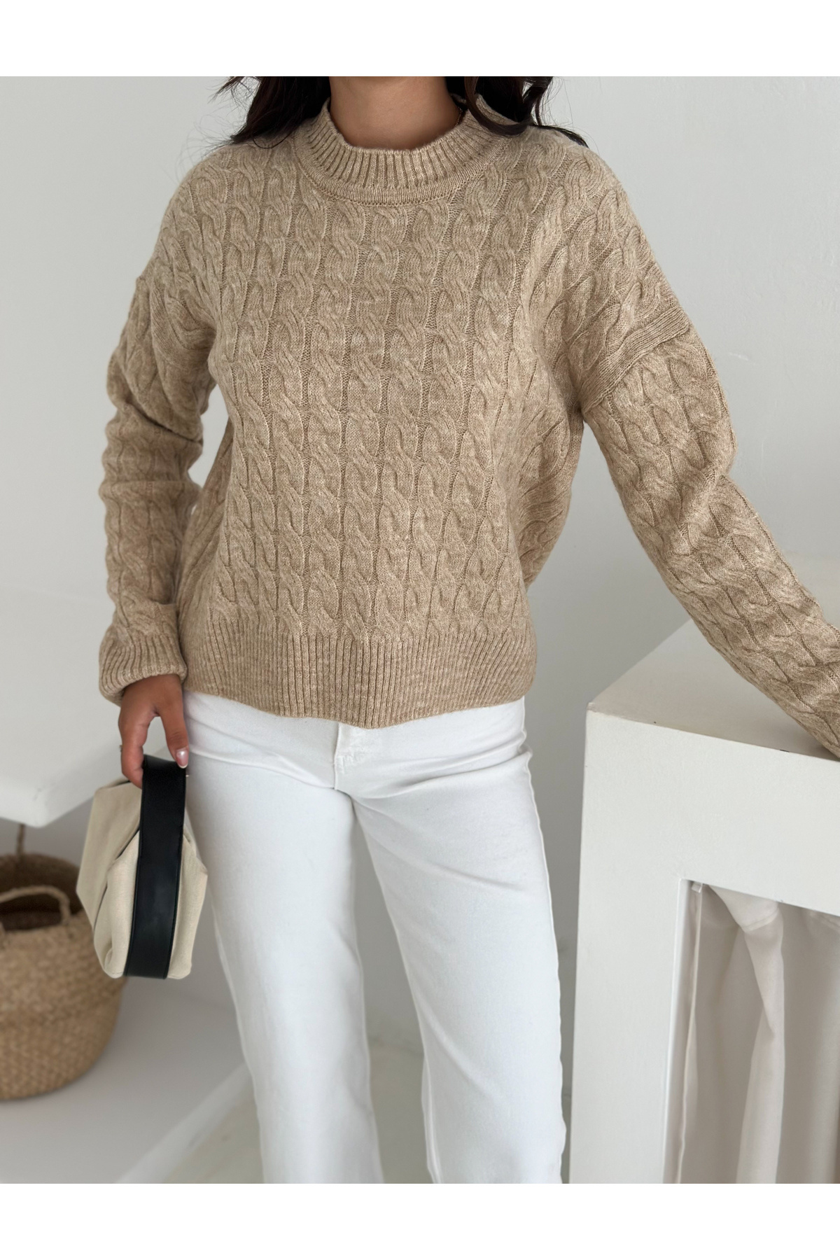 6855 Kadın Dik Yaka Saç Örgülü Triko Kazak Taş 6855 Kadın Dik Yaka Saç Örgülü Triko Kazak Taş K24KZK6855 Standart