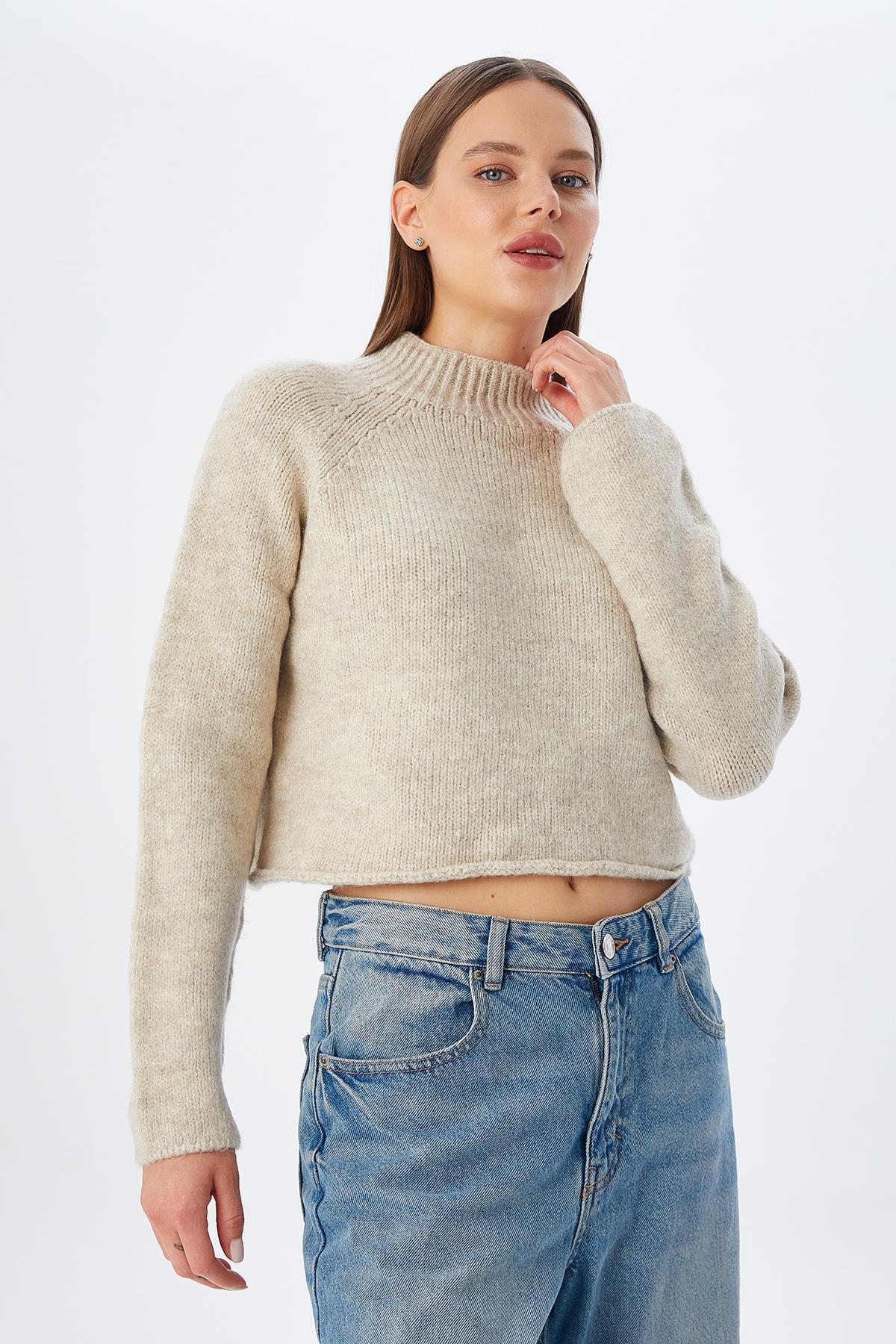 6854 Kadın Dik Yaka Bütün Crop Triko Kazak Naturel 6854 Kadın Dik Yaka Bütün Crop Triko Kazak Naturel K24KZK6854 Standart