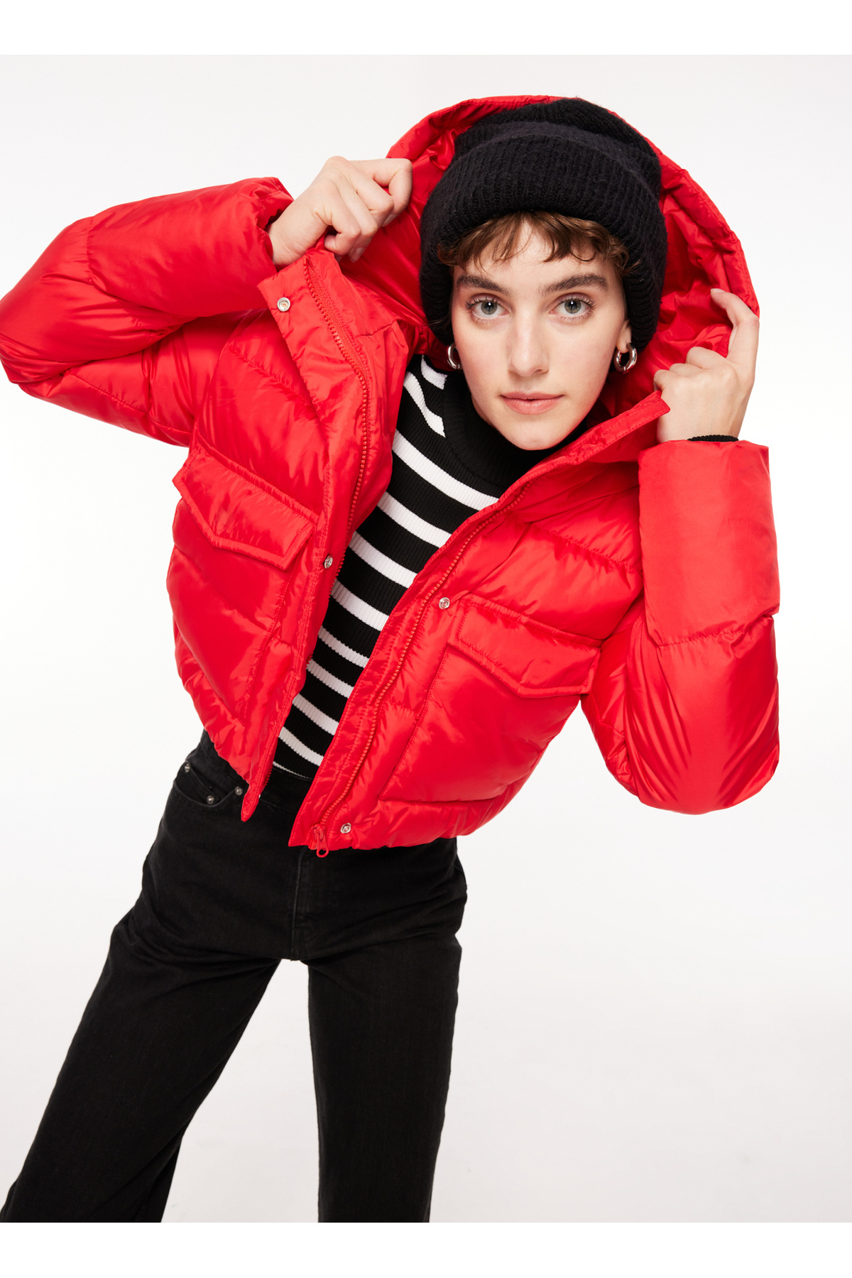 Dik Yaka Şişme Mont KIRMIZI LRİ0001 Dik Yaka Şişme Mont KIRMIZI LRİ0001 40