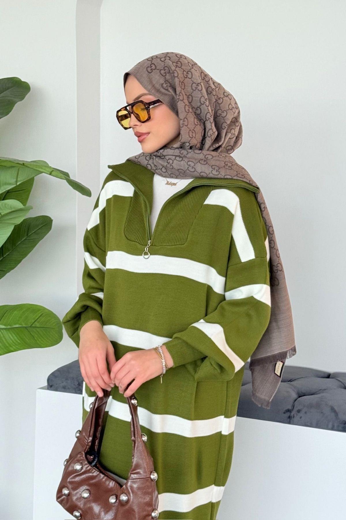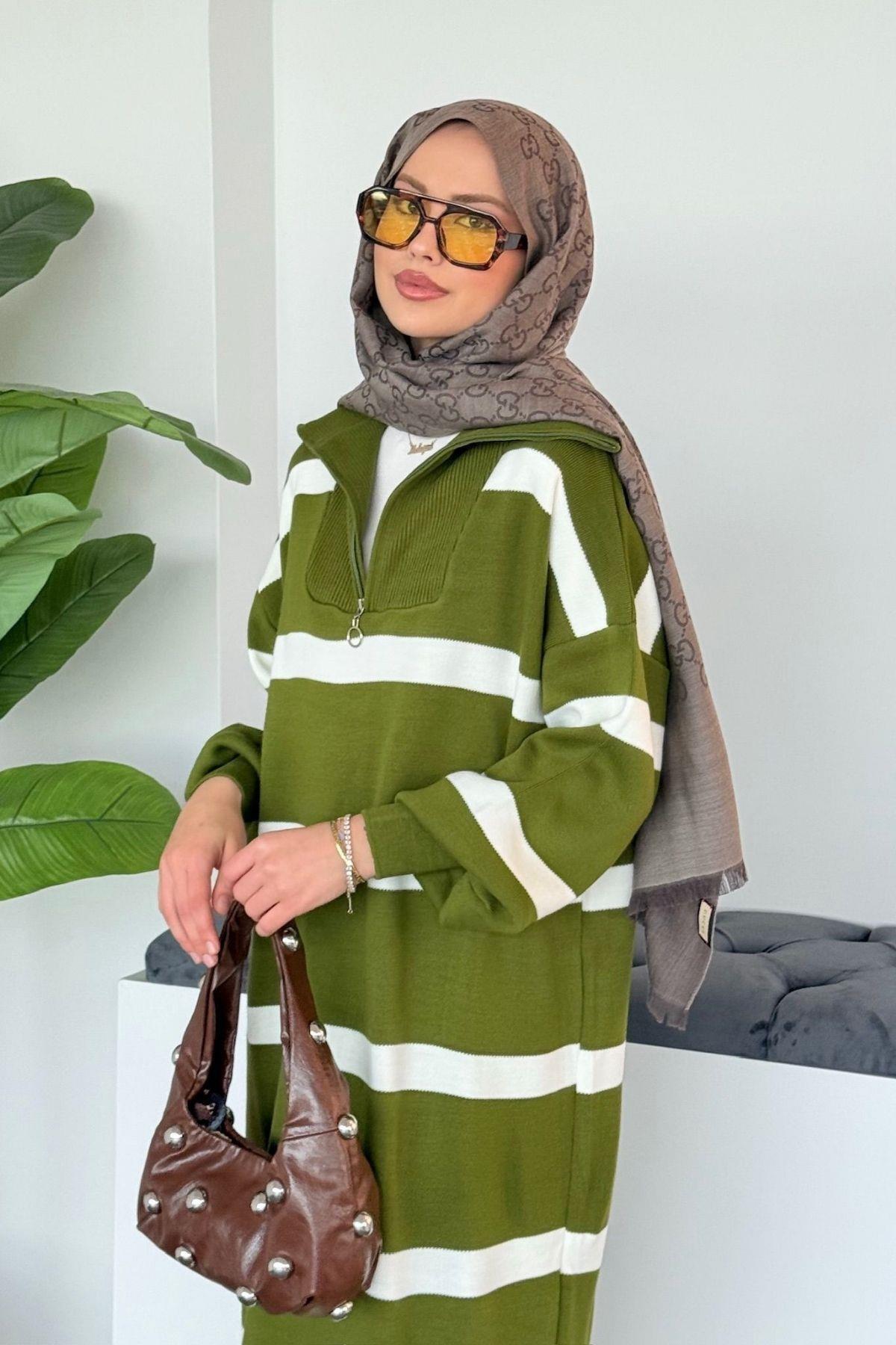 Sümeyye Triko Elbise Yağyeşili Sümeyye Triko Elbise Yağyeşili 1298 تک سایز