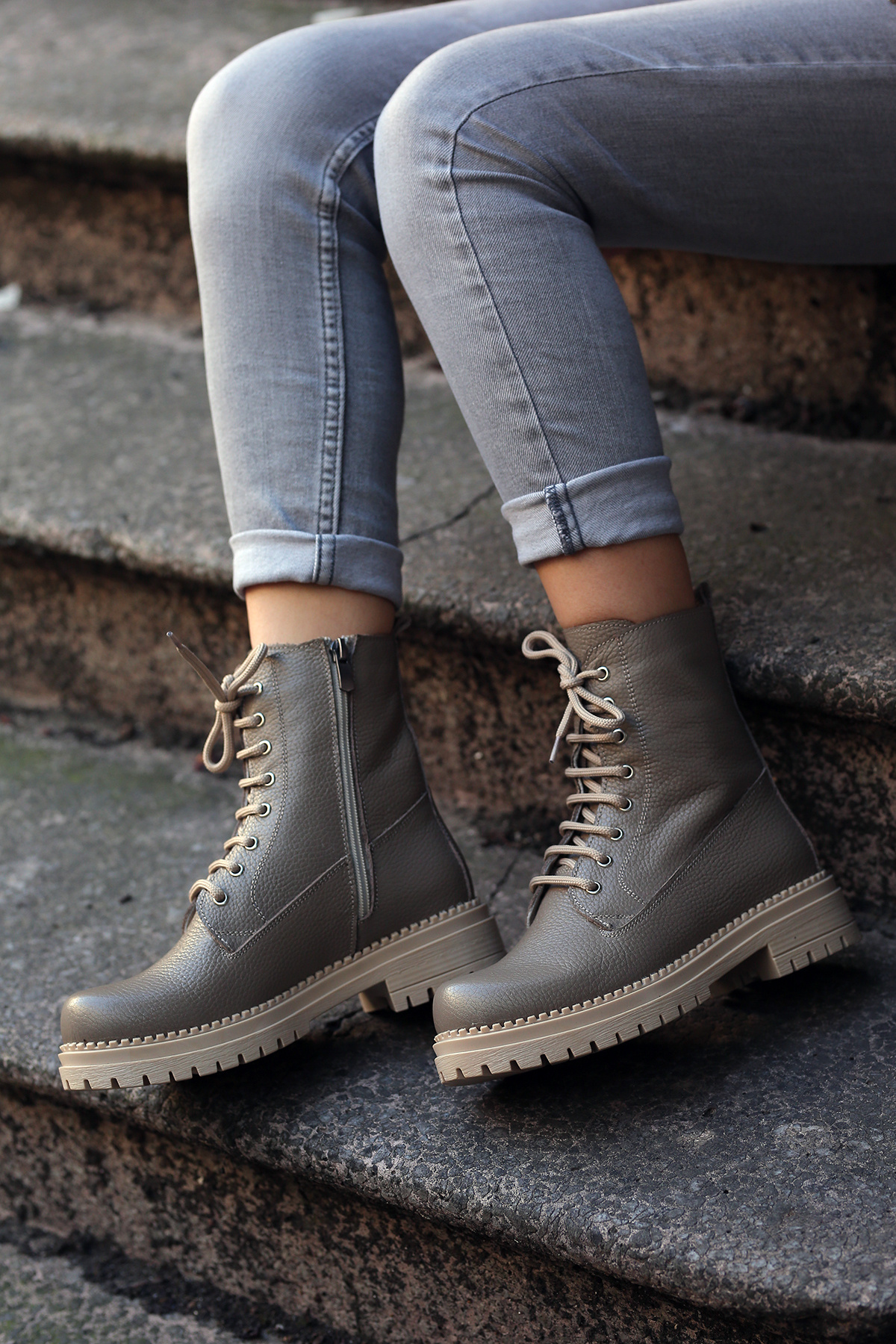 ( KİA) Hakiki Deri Bağcık Detaylı Fermuarlı Kauçuk Bot Gerçek Deri VIZON FLOTTER ( KİA) Hakiki Deri Bağcık Detaylı Fermuarlı Kauçuk Bot Gerçek Deri VIZON FLOTTER 40