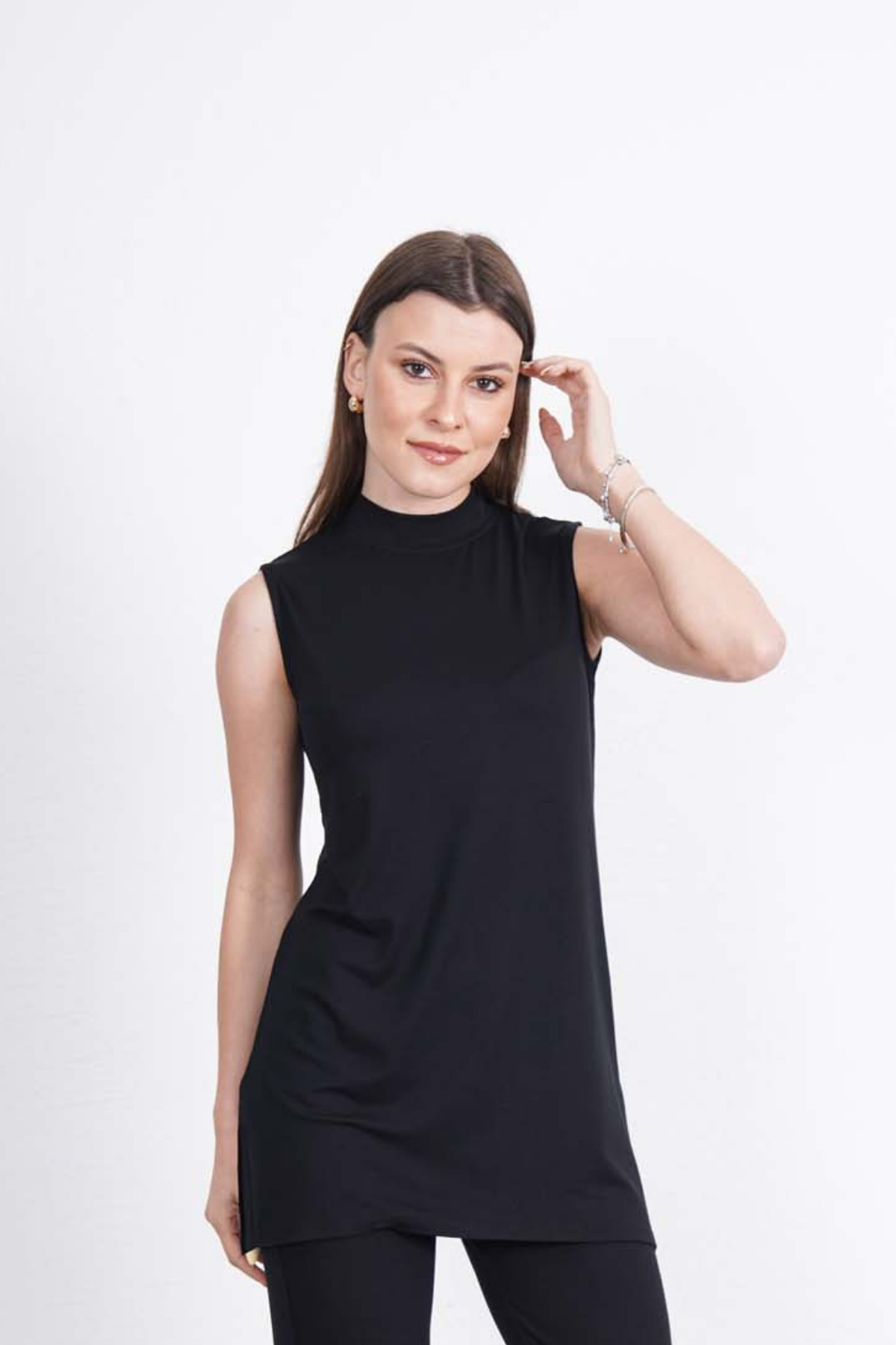 Viskon Kolsuz Tunik -Siyah Viskon Kolsuz Tunik -Siyah 8507001 6XL