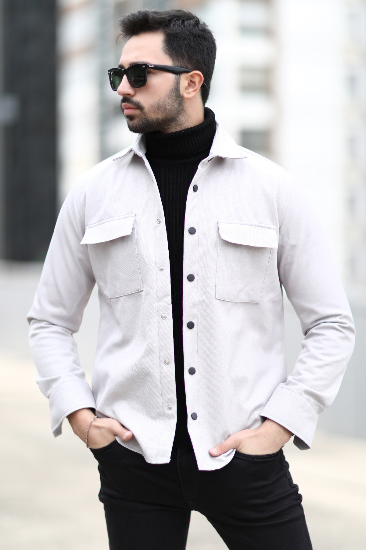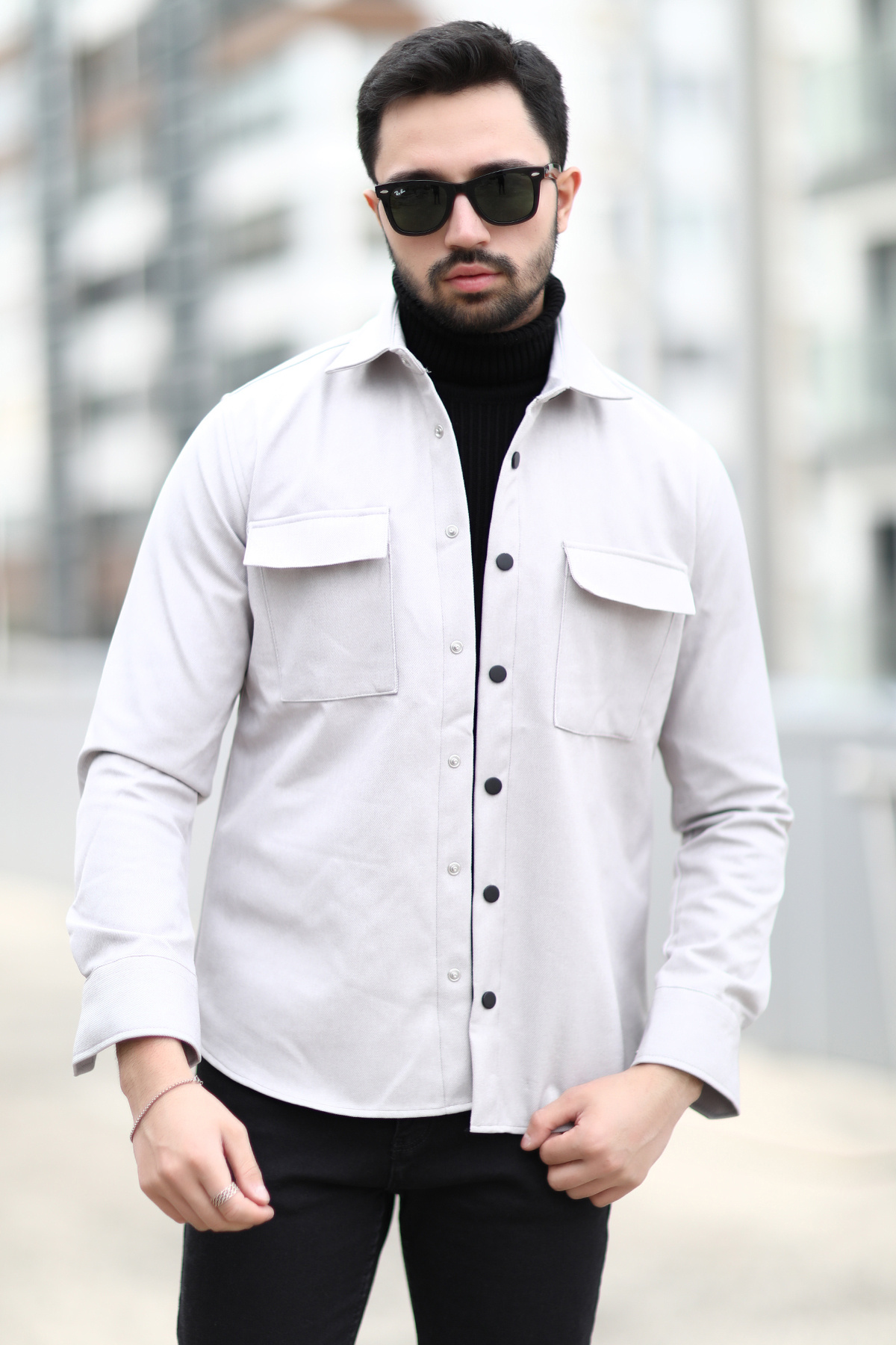 Erkek Gömlek Ceket Açık Gri Hafif Kumaş Çift Cepli Çıtçıt Kapama - 16815 Erkek Gömlek Ceket Açık Gri Hafif Kumaş Çift Cepli Çıtçıt Kapama - 16815 1463-16815 2XL