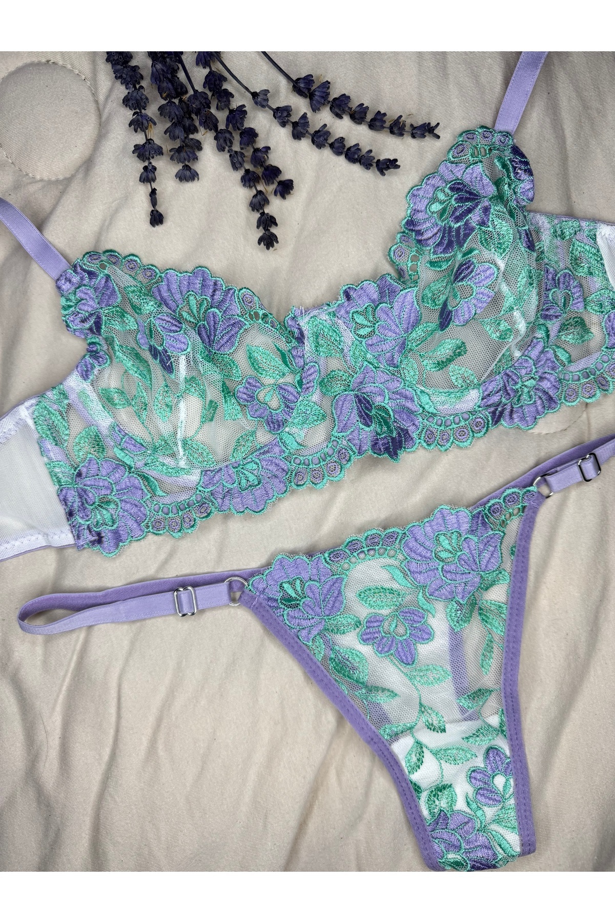 Yeşil Mor Çiçekli Balenli Kapsız Tül Sütyen Takımı (SÜTYEN TANGA) Yeşil Mor Çiçekli Balenli Kapsız Tül Sütyen Takımı (SÜTYEN TANGA) avcı 90B