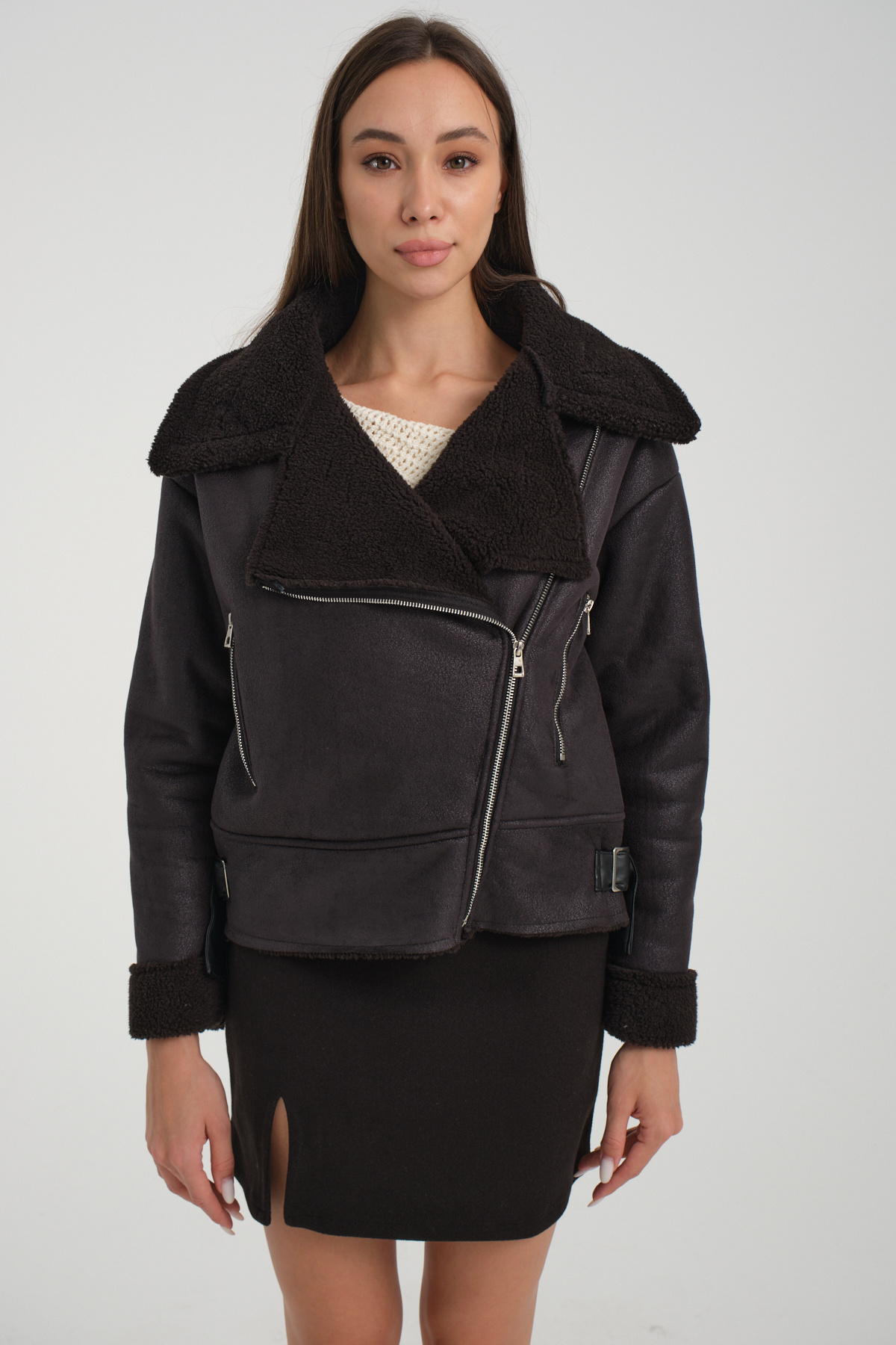 Kadın İçi ve Yaka Kürklü Suni Süet Biker Ceket Kadın İçi ve Yaka Kürklü Suni Süet Biker Ceket 21138MZR816 L
