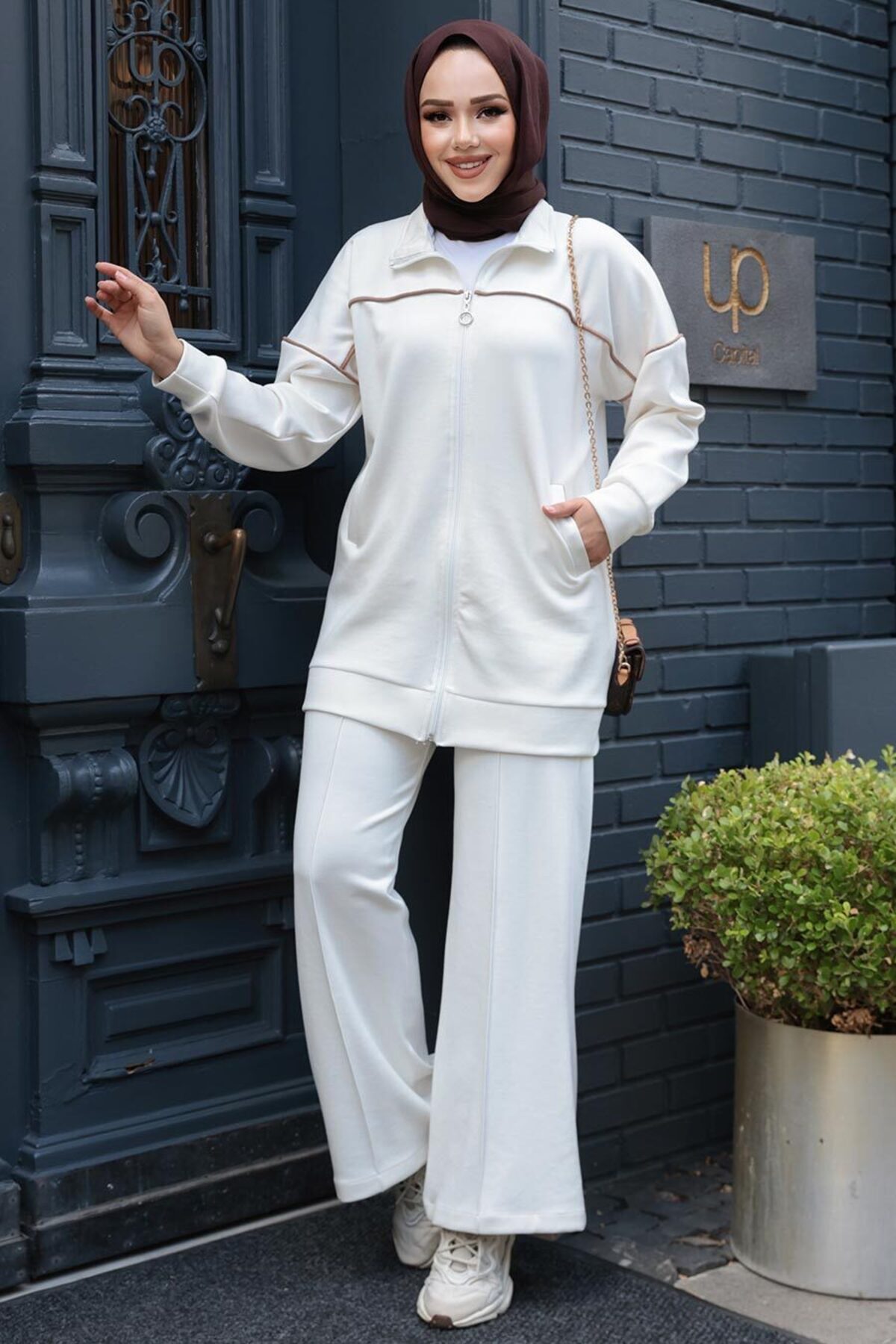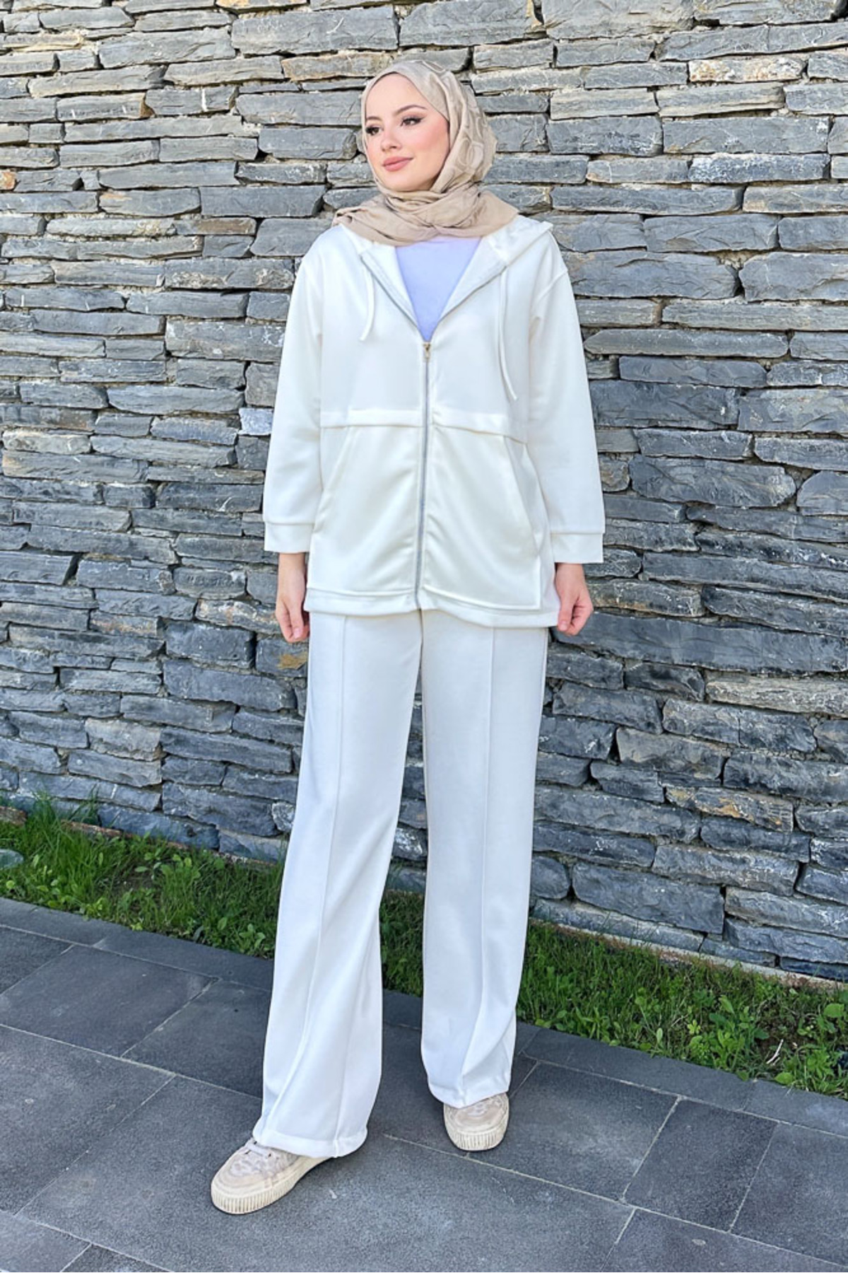 Kadın Triko Kumaş Fermuarlı Krem Kazak ve Yüksek Bel Pantolon Alt Üst Triko Tesettür Takım 7000 Kadın Triko Kumaş Fermuarlı Krem Kazak ve Yüksek Bel Pantolon Alt Üst Triko Tesettür Takım 7000 4S1B-TOPR-7000 S/M