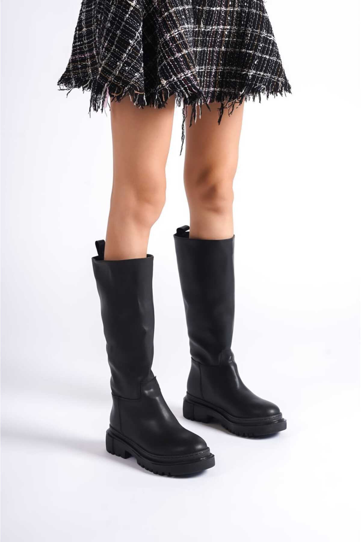 Carlos Siyah Mat Deri Fermuarlı Kadın Çizme Carlos Siyah Mat Deri Fermuarlı Kadın Çizme SF1291 36