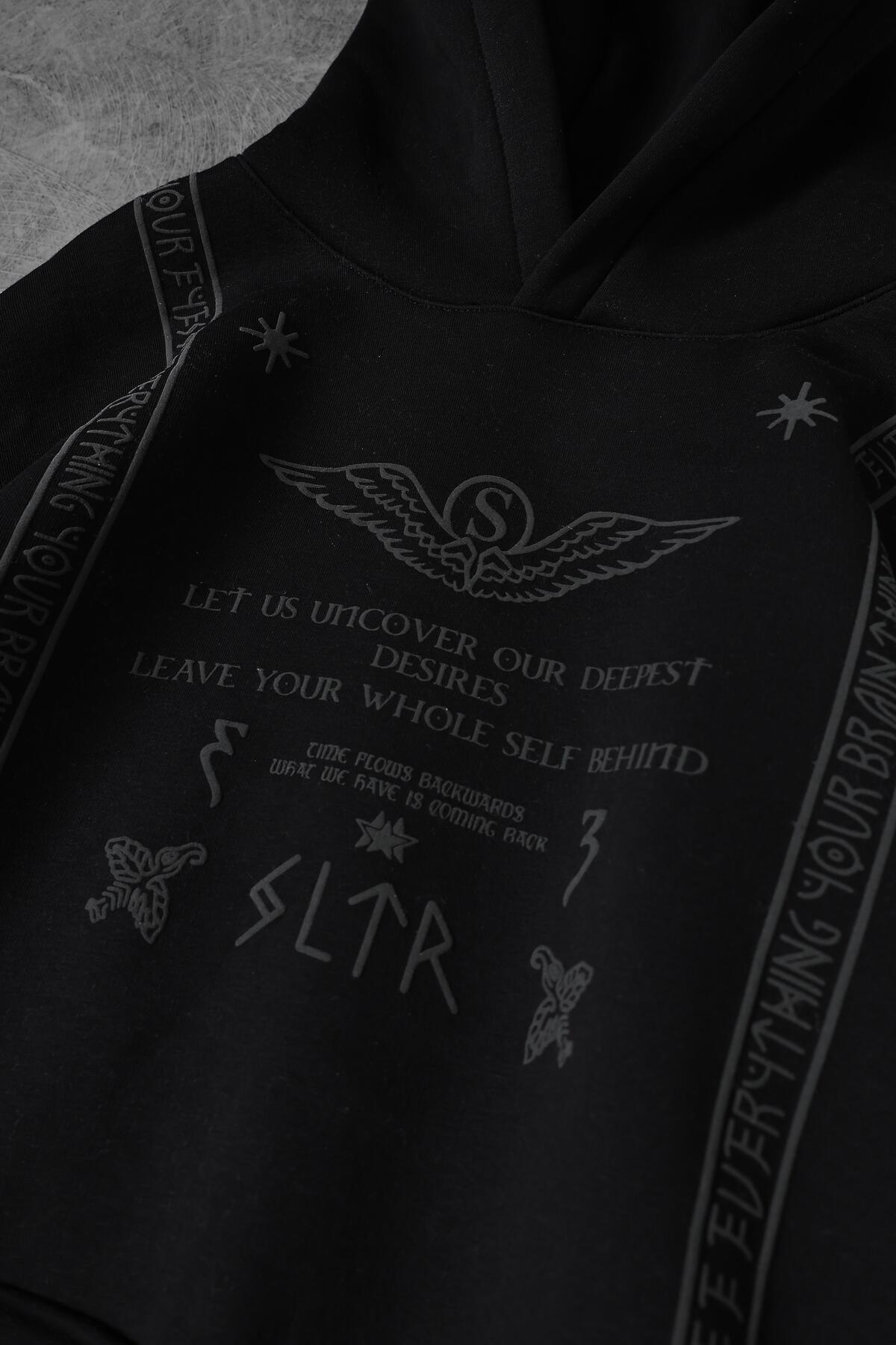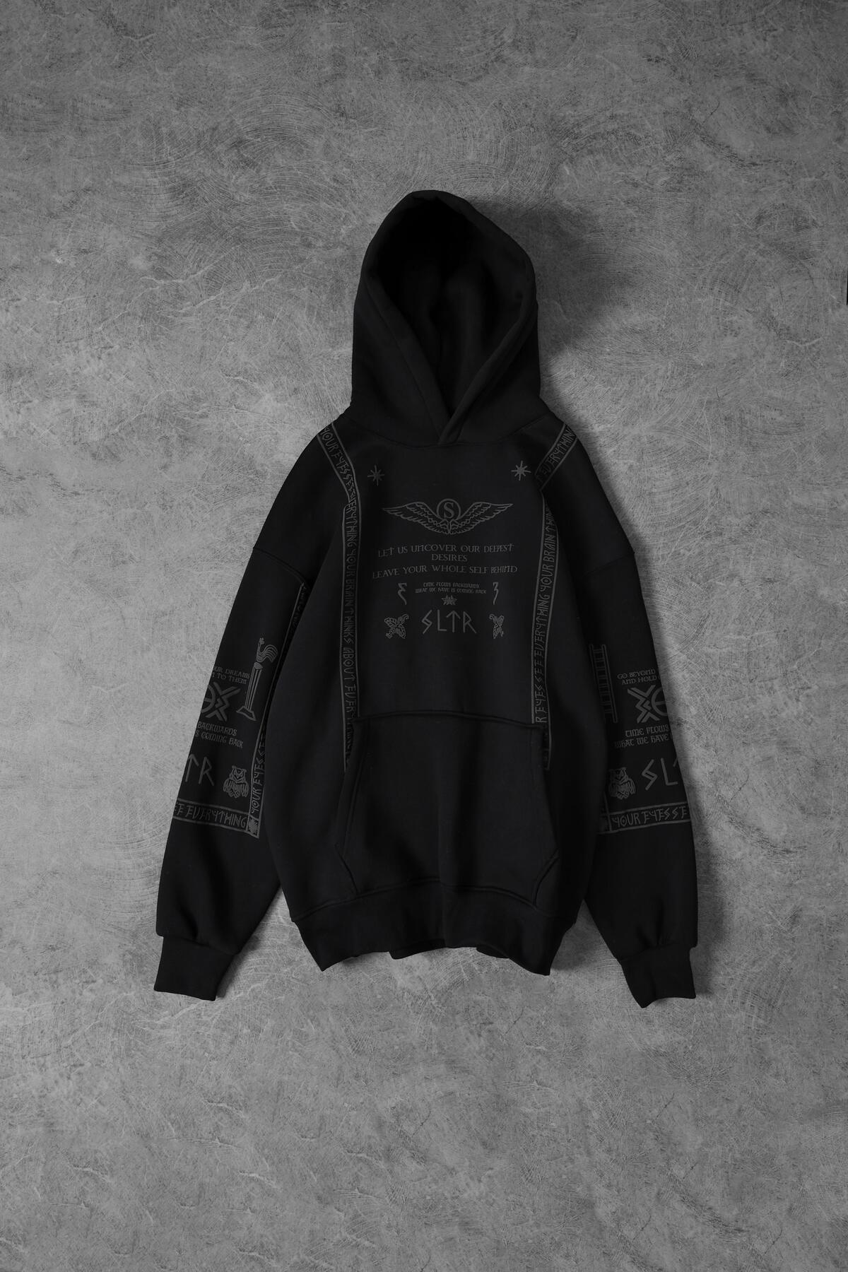 Erkek Siyah Kabartma Baskı Kapüşonlu Oversize Sweatshirt Erkek Siyah Kabartma Baskı Kapüşonlu Oversize Sweatshirt S5017 XL