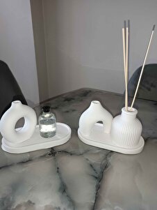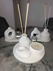 Dekoratif Oda Kokusu Çizgili Vazo Ve Beyaz Stand seti Dekoratif Oda Kokusu Çizgili Vazo Ve Beyaz Stand seti 010 تک سایز